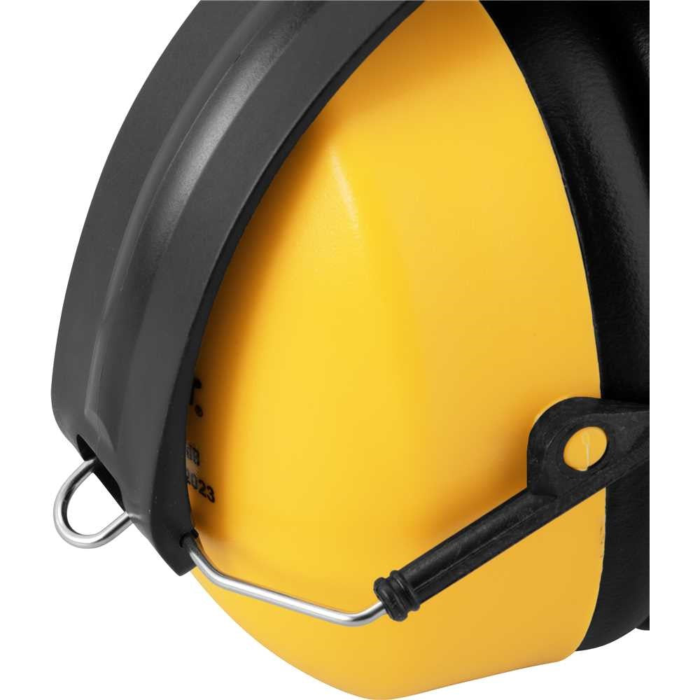Possui haste regulável em metal e plástico ABS, almofadas de espuma de poliuretano e conchas em PVC.