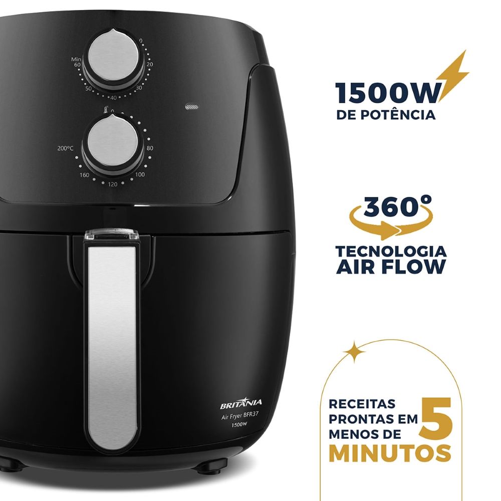 - Linha: Fritadeira air fryer britânia 4,2l 1500w bfr37 preto - 220v