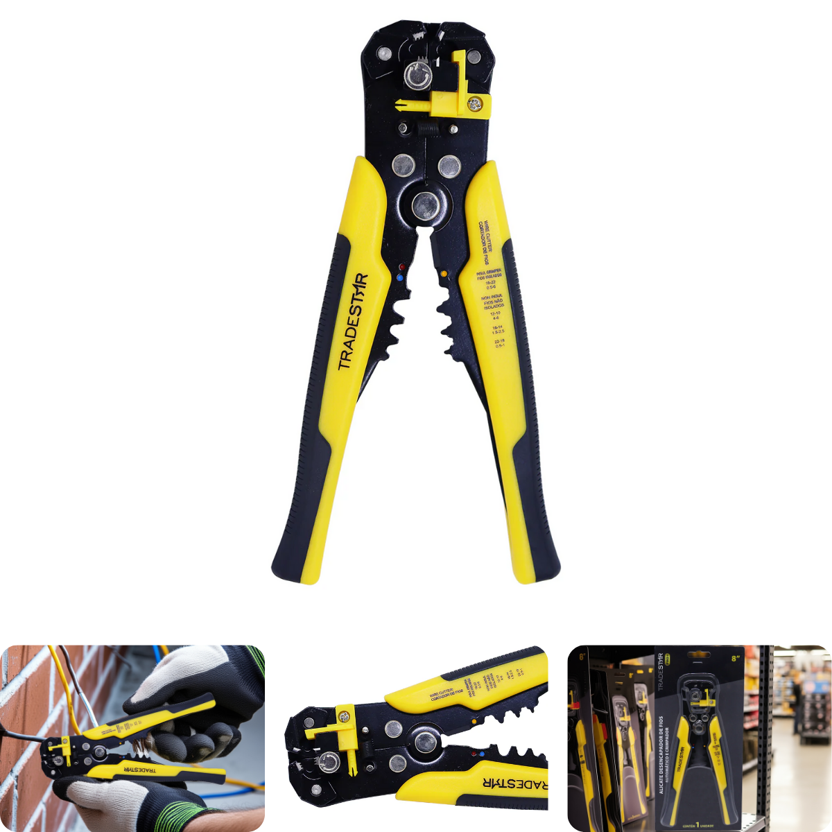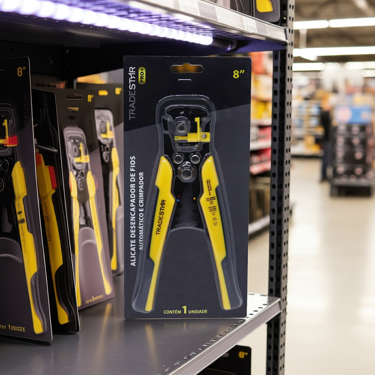 O Alicate Decapador Eletricista Tradestar 8" (203 mm) é uma ferramenta essencial para profissionais que atuam em instalações elétricas, manutenção de equipamentos eletrônicos e cabeamento de redes. Desenvolvido em aço carbono especial com lâminas de corte em latão tratado termicamente, este alicate combina decapagem automática, crimpagem e corte de fios, proporcionando precisão e eficiência em cada operação.