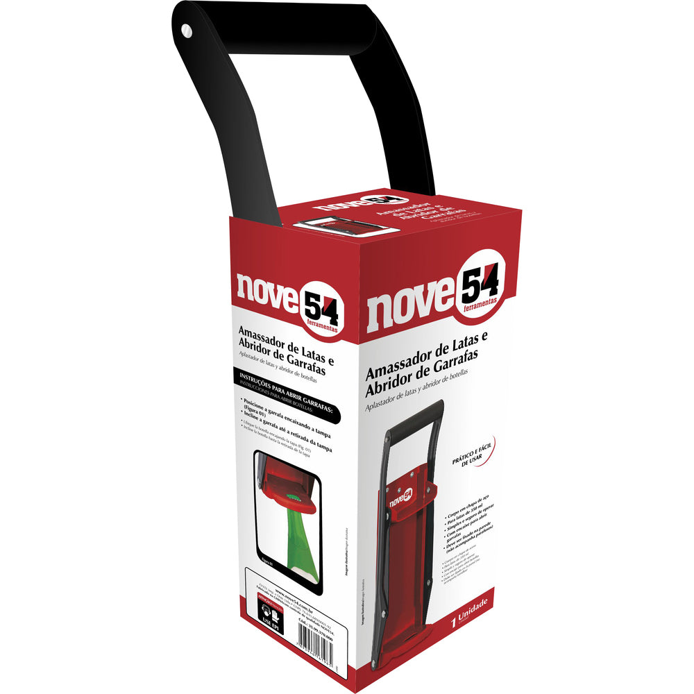 Material: Corpo em chapa de aço Capacidade do amassador de latas: Latas de até 475 ml Profundidade do amassador: 80 mm Largura do amassador: 105 mm Altura do corpo do amassador: 245 mm Altura total do amassador (corpo + alça): 325 mm