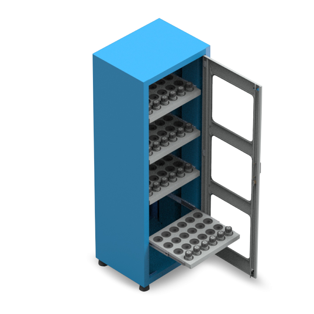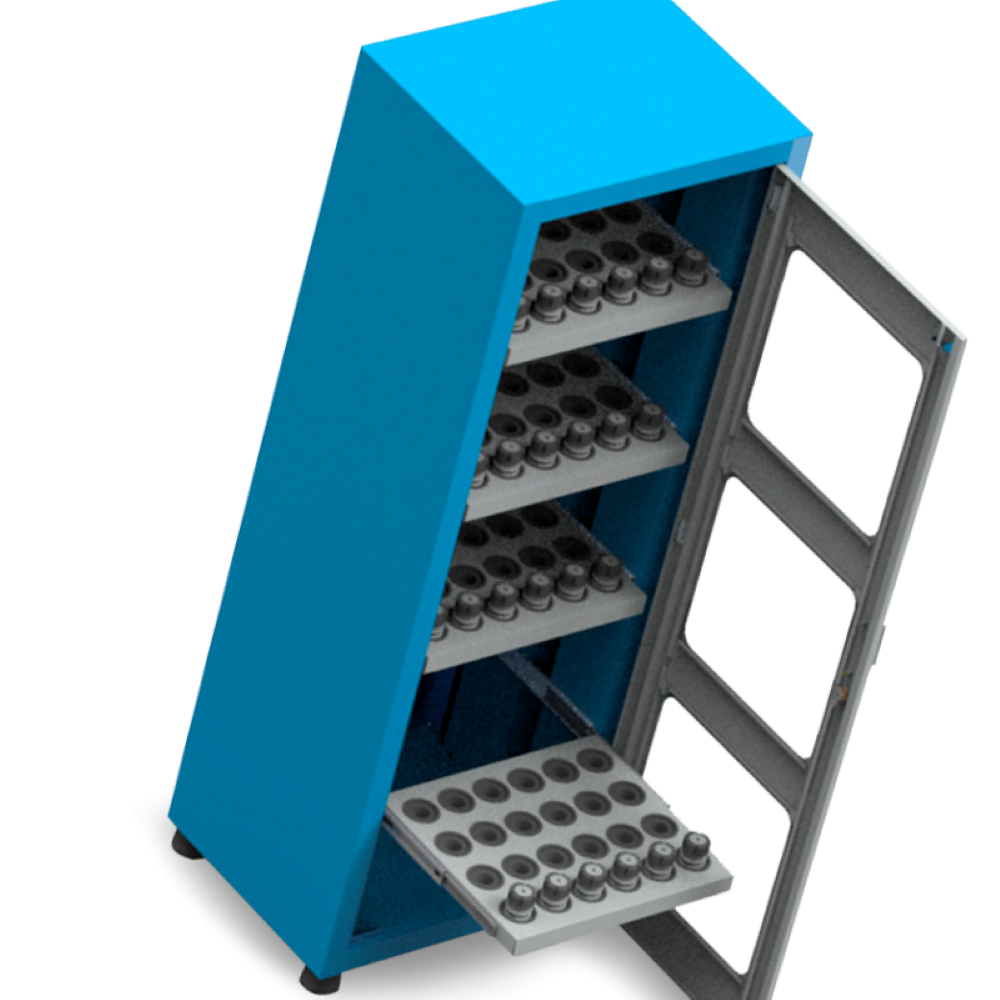 Conteúdo da embalagem: 1 Armário com 3 Prateleiras porta cone ISO50 porta visor de acrilico para 72 pecas ARM055A CMB
