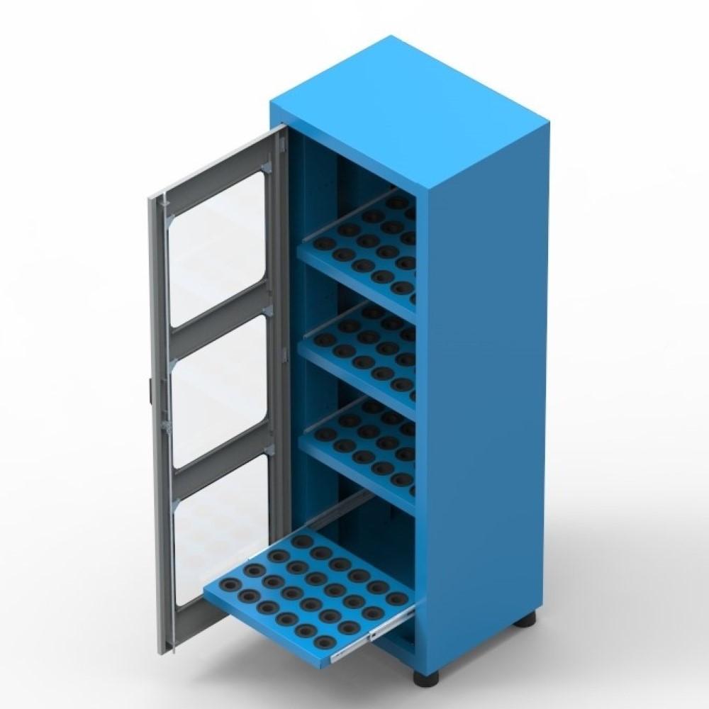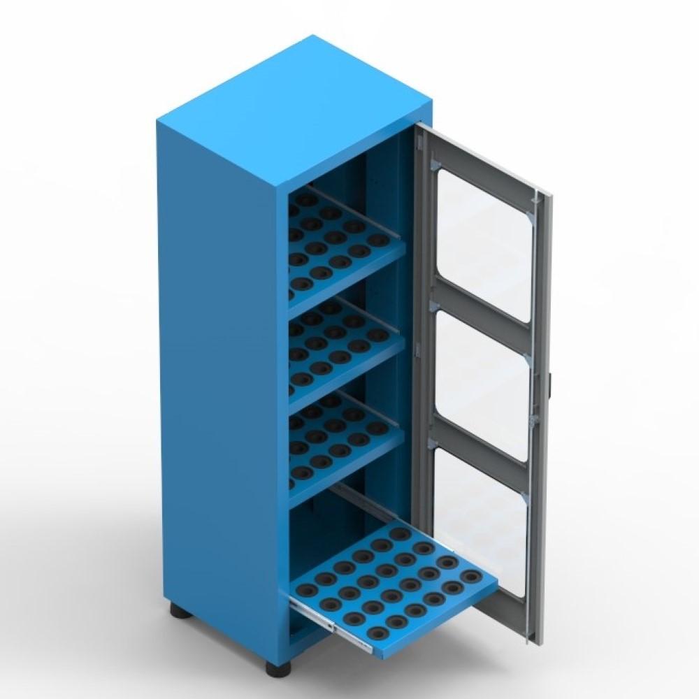 Conteúdo da embalagem: 1 Armário com 4 Prateleiras porta cone ISO30 porta visor de acrilico para 96 pecas ARM057A CMB