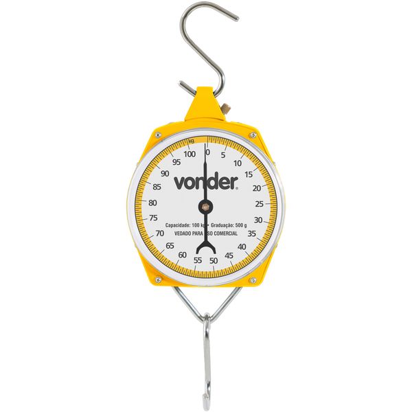 Conteúdo da embalagem 1 Balança Aplicações e dicas de uso Indicada para pesagens em geral em chácaras, fazendas e sítios. Ideal para pesagens de ração, aves, suínos, ovinos, caprinos e produtos rurais. Possui graduação de 500 g (vetada para uso comercial). Destaques e diferenciais Confeccionada em plástico resistente e metal. Acompanha gancho para prender o material ou alimento a ser pesado.