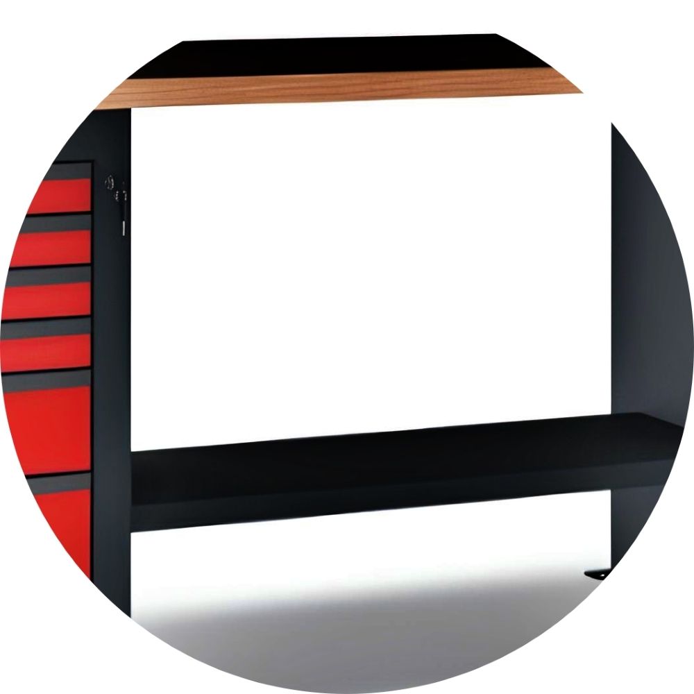 Essa bancada de trabalho é ideal para ambientes que necessitam de um espaço robusto, organizado e seguro para armazenamento de ferramentas e outros materiais de trabalho.