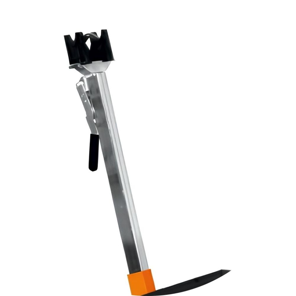 Possui um suporte central com pino de segurança que facilita a movimentação da bicicleta durante o trabalho.