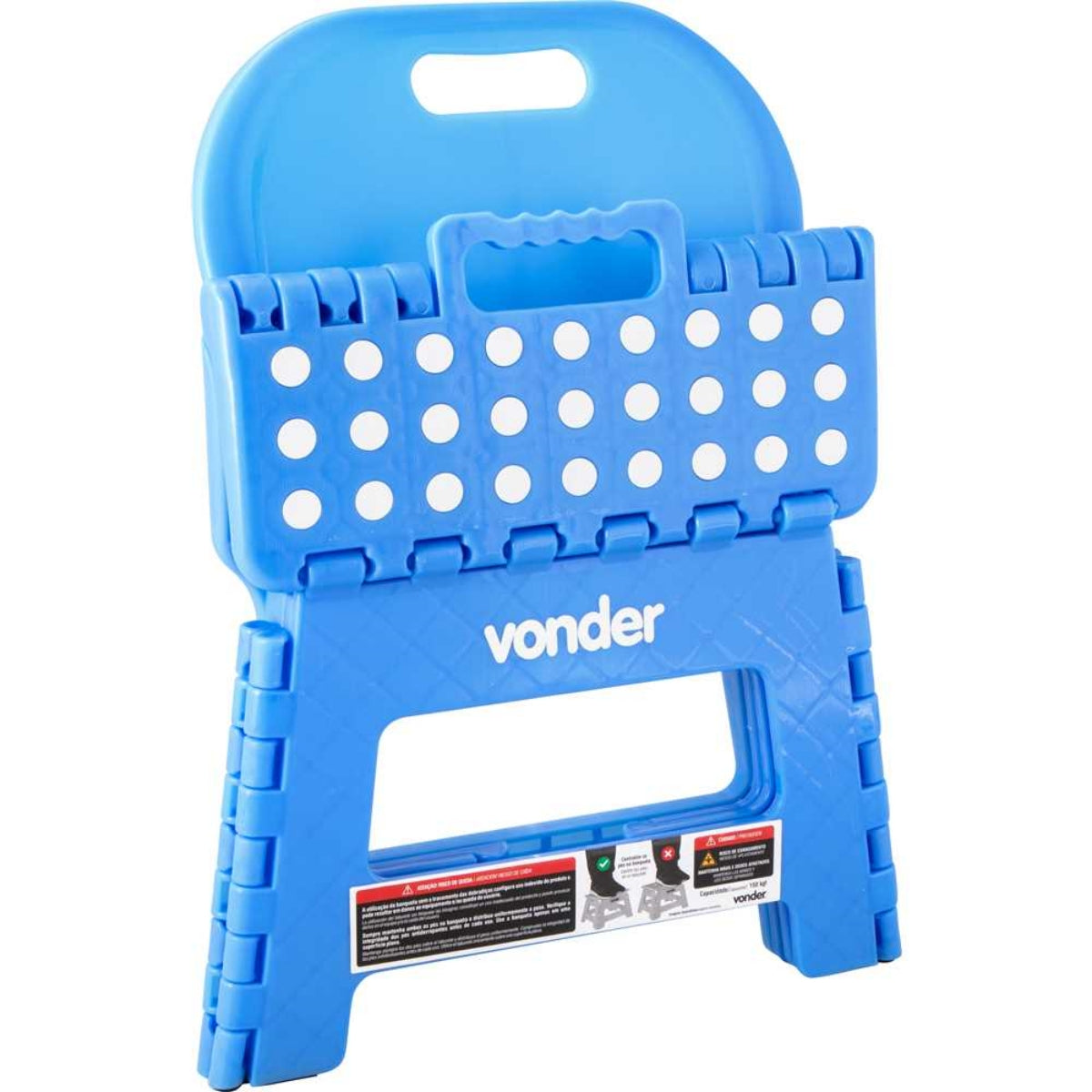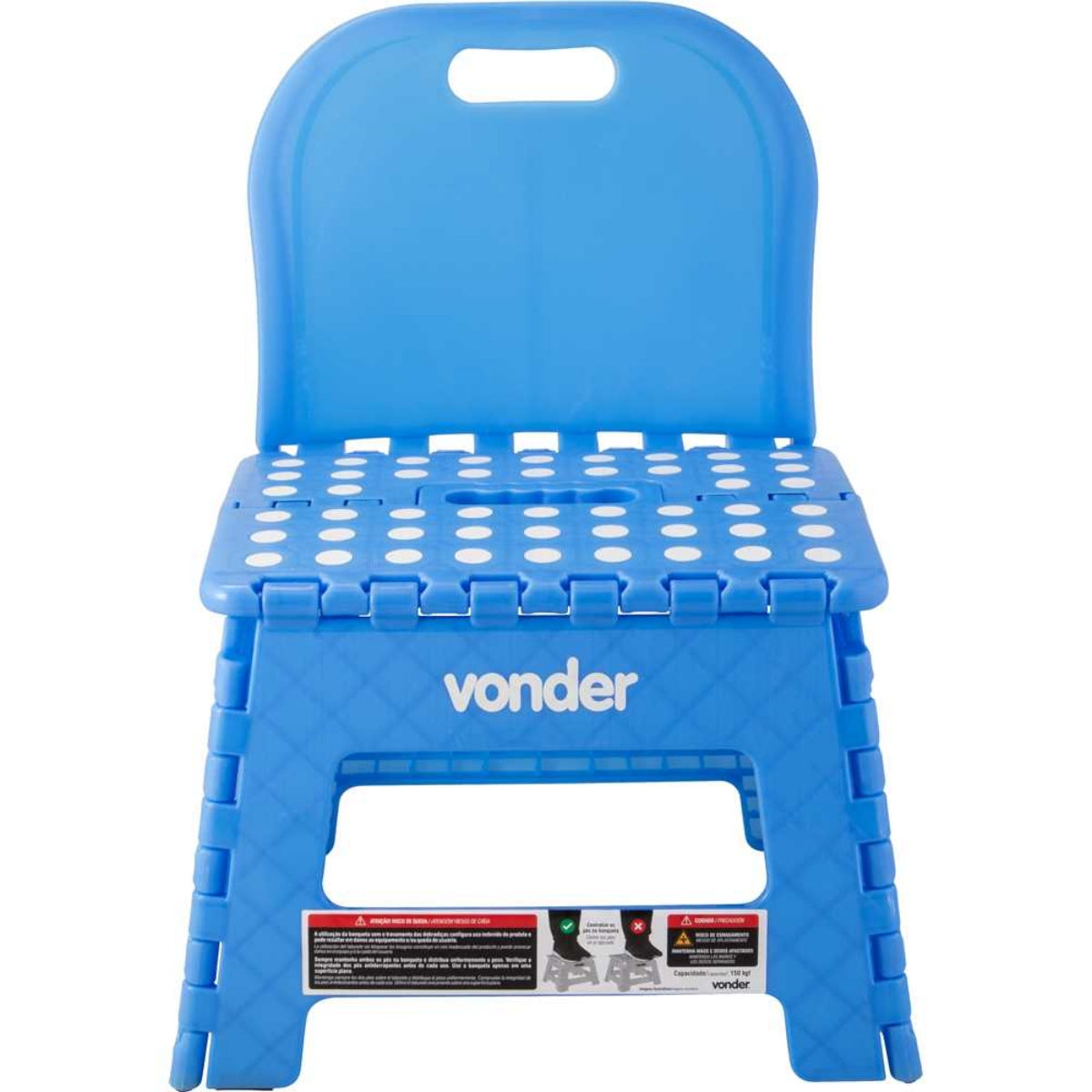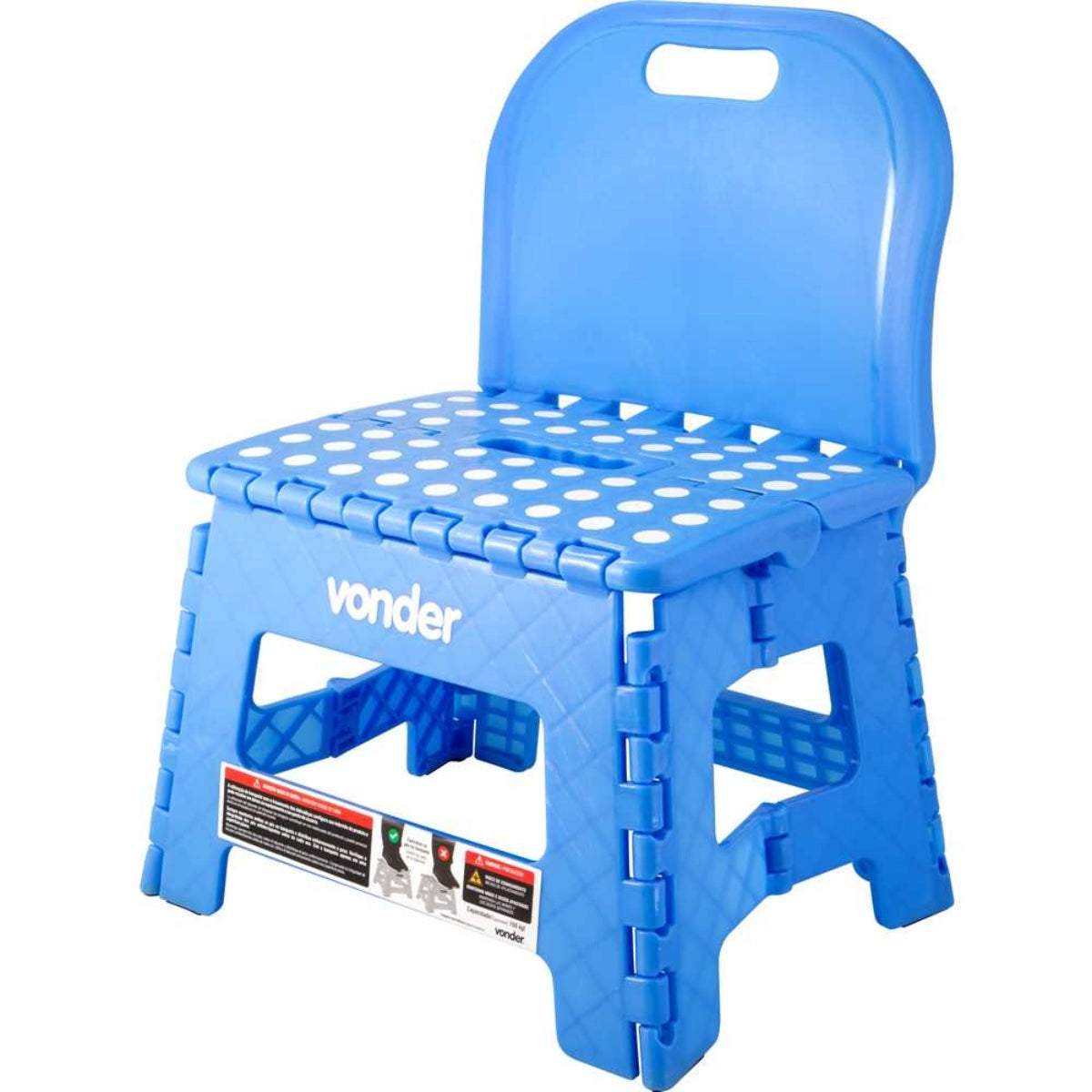 Conteúdo da embalagem: 1 Banqueta Plástica Dobrável Azul 220mm Com Encosto Vonder