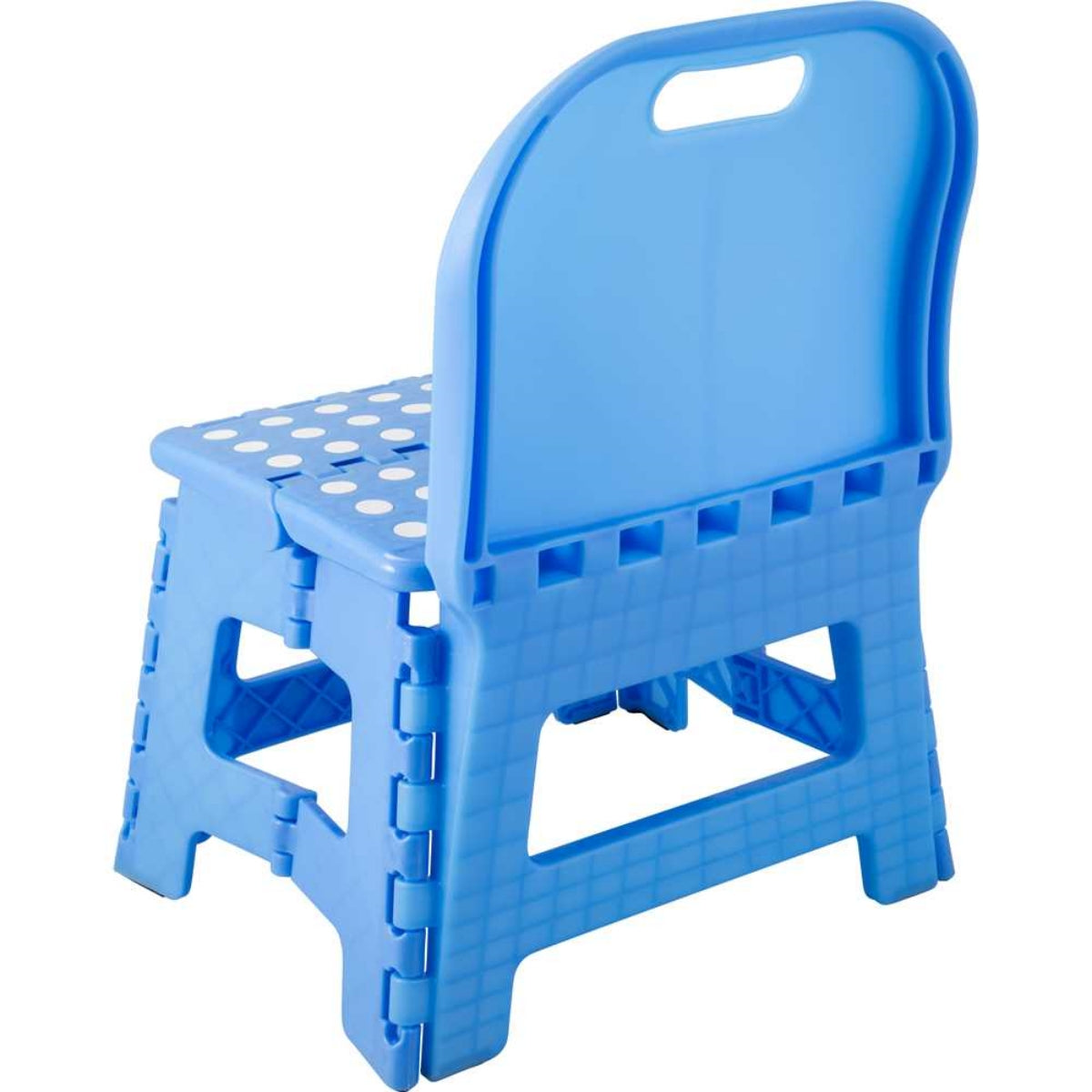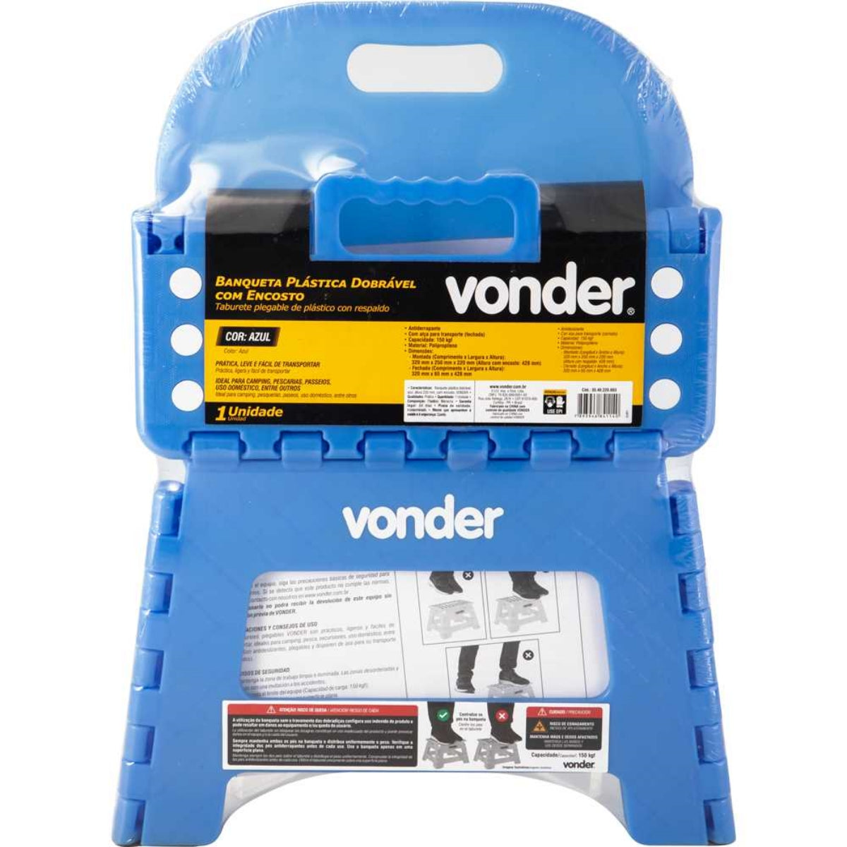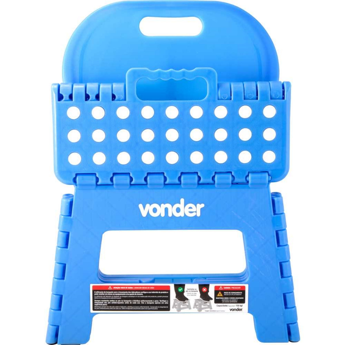 Conteúdo da embalagem: 1 Banqueta Plástica Dobrável Azul 220mm Com Encosto Vonder