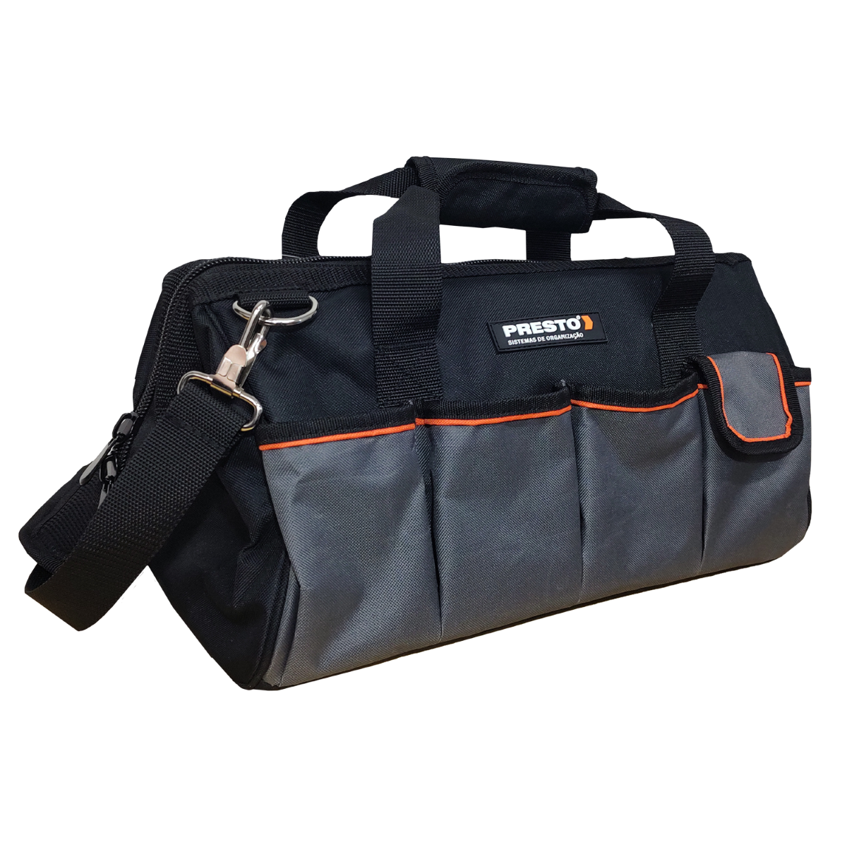 A Bolsa para Ferramentas da Presto oferece praticidade e segurança no armazenamento e transporte de ferramentas e acessórios. Ideal para profissionais que necessitam de mobilidade e organização, esta bolsa é confeccionada em poliéster 600D, conhecido por sua durabilidade e facilidade de limpeza.
