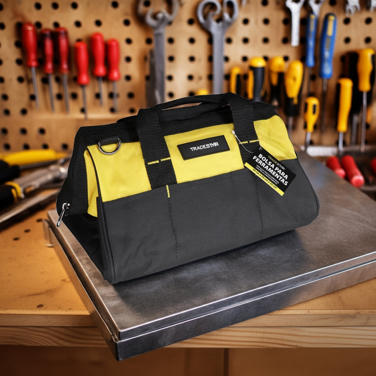 A Bolsa para Ferramentas Tradestar é a solução ideal para profissionais que buscam praticidade, organização e durabilidade no transporte de suas ferramentas. Fabricada em lona 600 resistente com base reforçada, esta bolsa oferece segurança e conforto para o dia a dia de trabalho, além de possuir 20 divisórias que permitem organizar peças, ferramentas e acessórios de maneira eficiente.