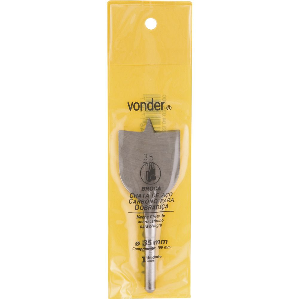 Broca chata aço carbono 35,0x100mm para dobradiça Vonder