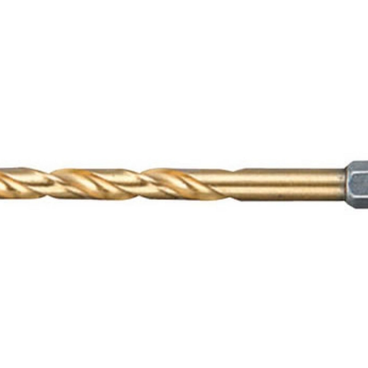 Broca HSS-TiN com banho de titânio, aumentando a eficiência e a vida útil, ideal para perfurações rápidas e precisas em metais.