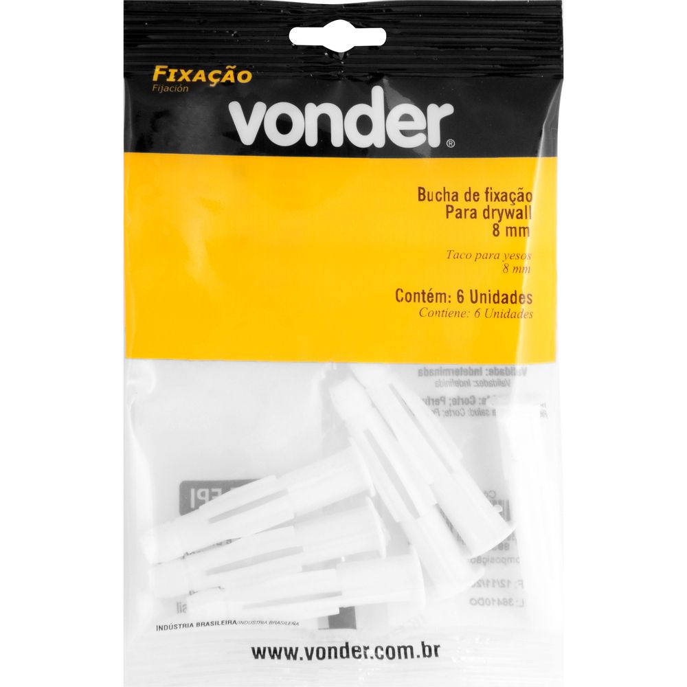 1 Cartela com 6 buchas de fixação para drywall