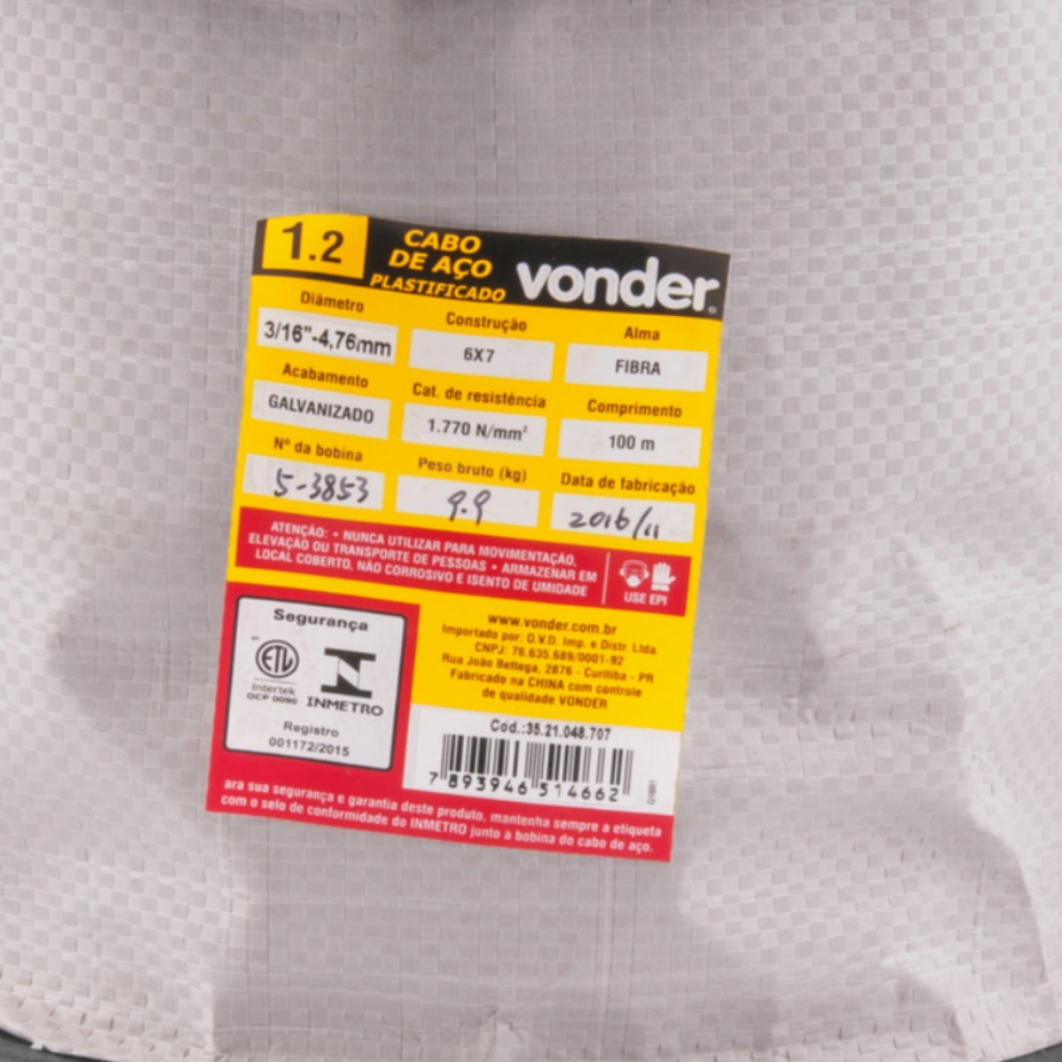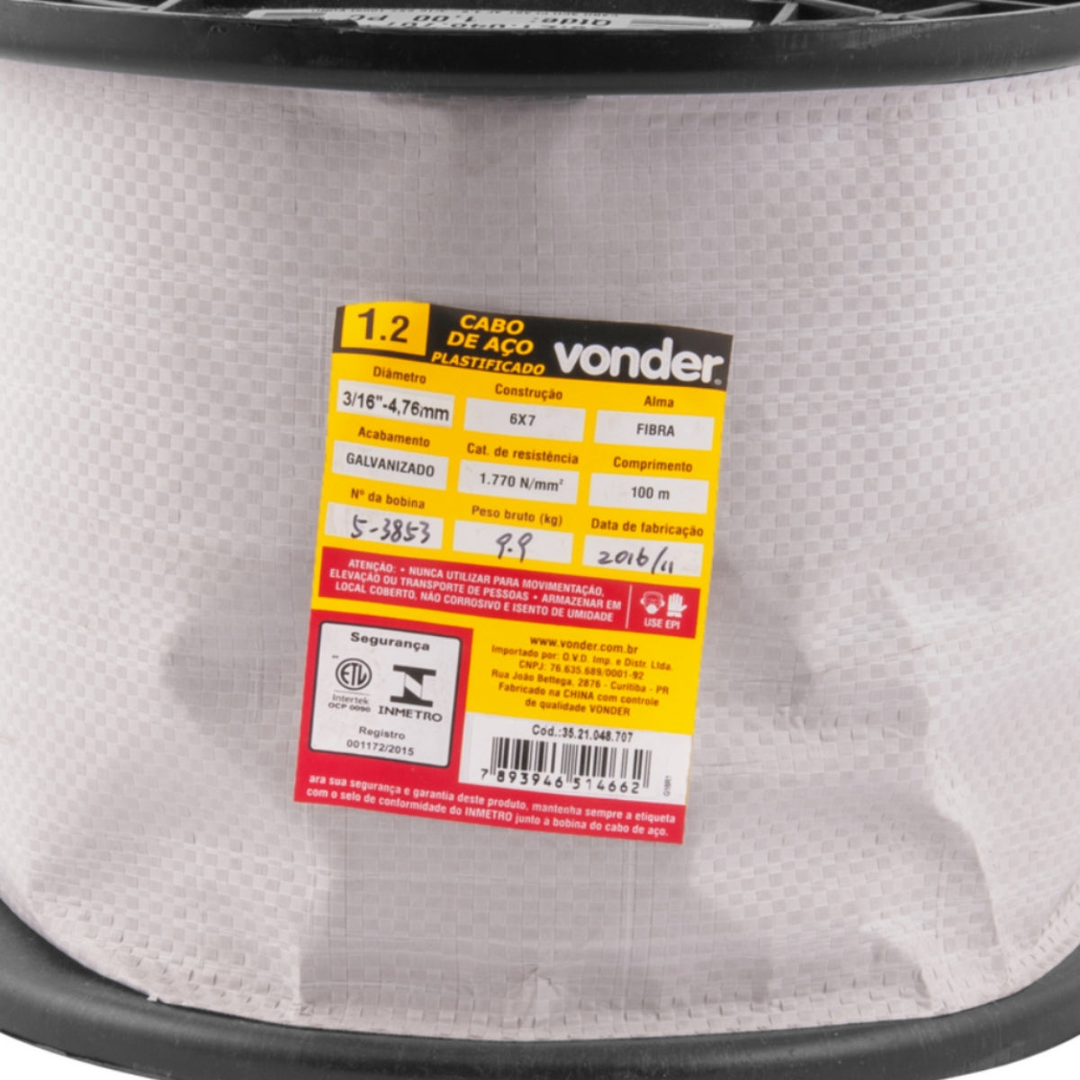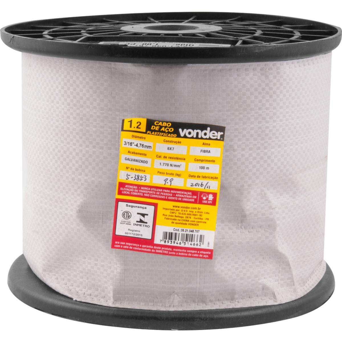 Comprimento da bobina do cabo de aço: 100 m