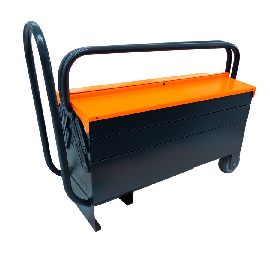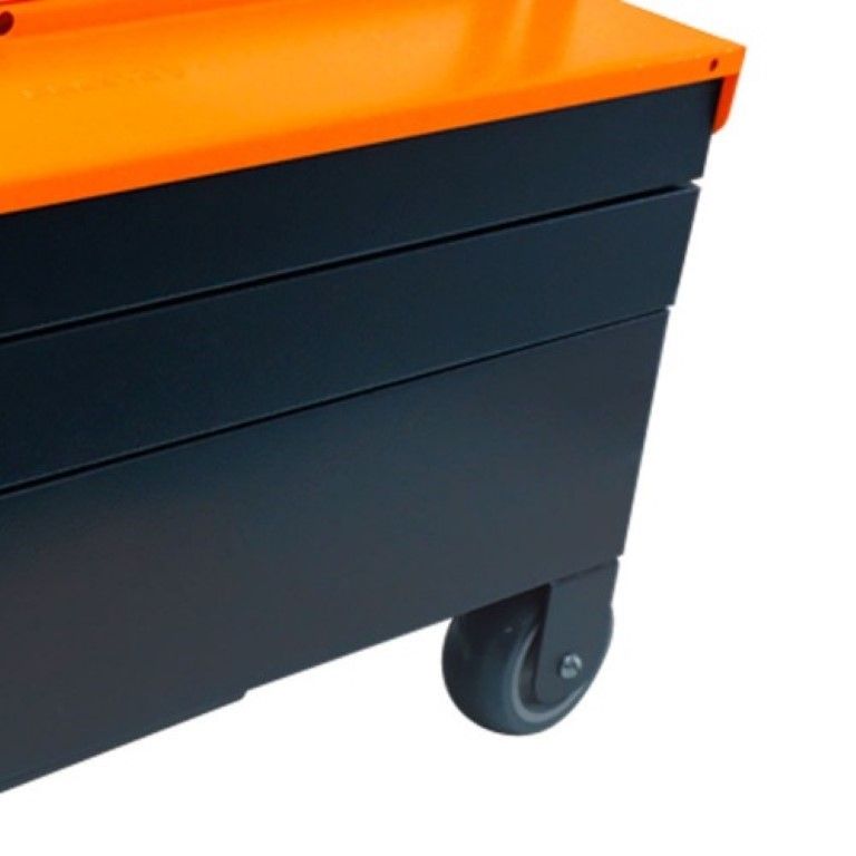 Possui 5 gavetas, sendo 1 grande e 4 pequenas, com duas rodas de 2'' siliconada e uma alça retrátil para movimentação.