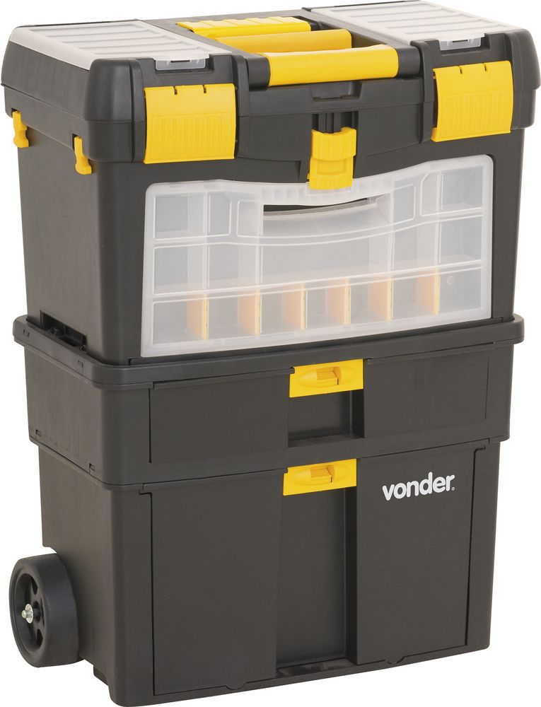 Organize e transporte suas ferramentas com facilidade e segurança utilizando a Caixa Plástica Para Ferramentas da Vonder. Este baú robusto é ideal para armazenar ferramentas, peças e acessórios, garantindo que tudo esteja sempre ao seu alcance. Com uma estrutura reforçada, a caixa possui tampa com dois compartimentos, bandeja removível para ferramentas, bandeja frontal destacável com múltiplas divisórias, alça dobrável e rodas para facilitar o transporte. As travas reforçadas asseguram que seus itens estejam sempre protegidos.