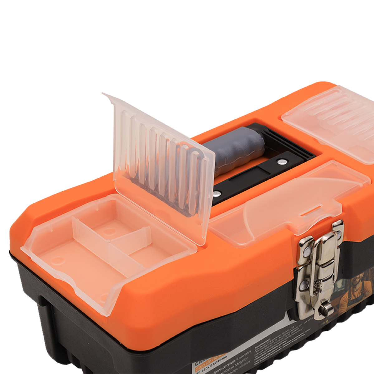 Conteúdo da embalagem: 1 Caixa Plástica para Ferramentas com Bandeja e Organizadores 13" Presto
