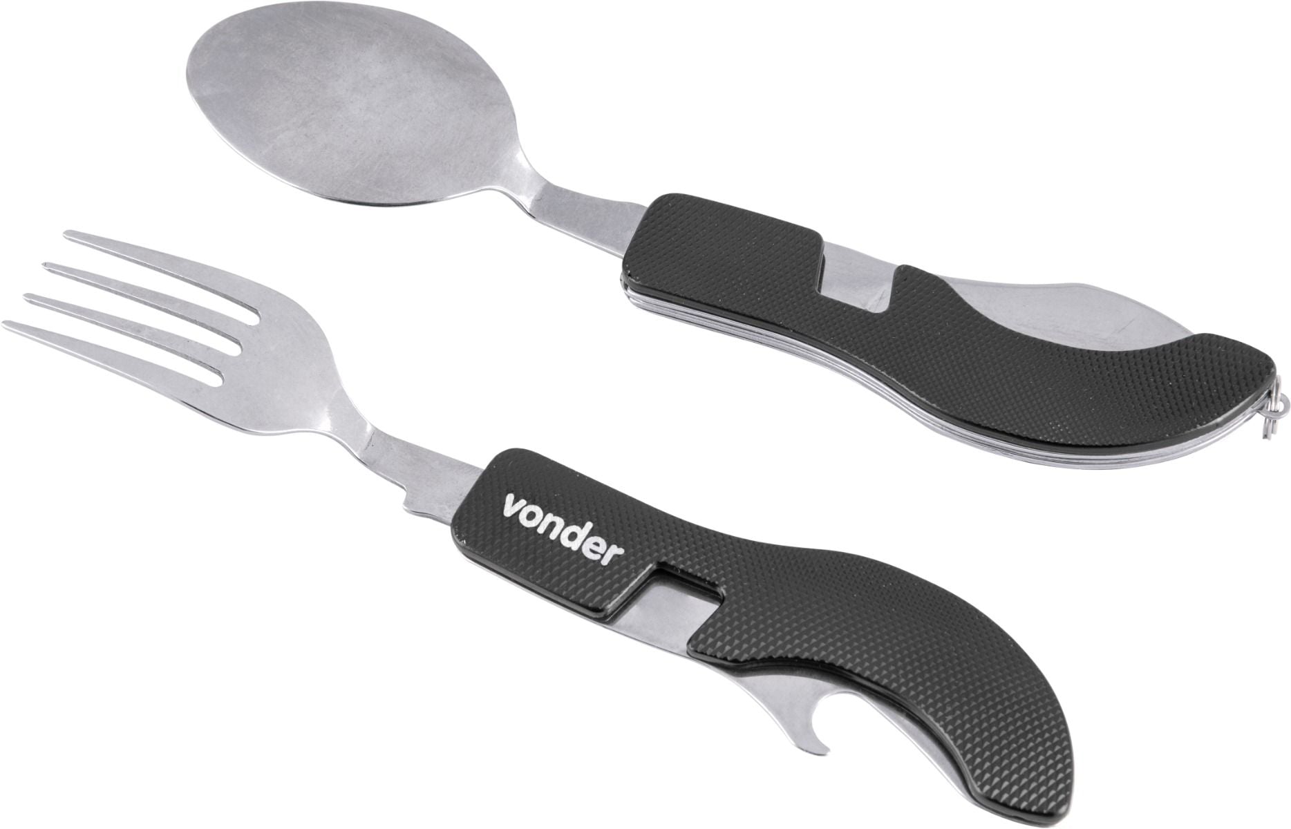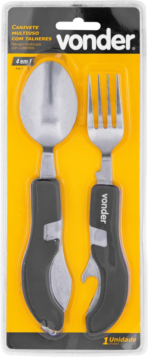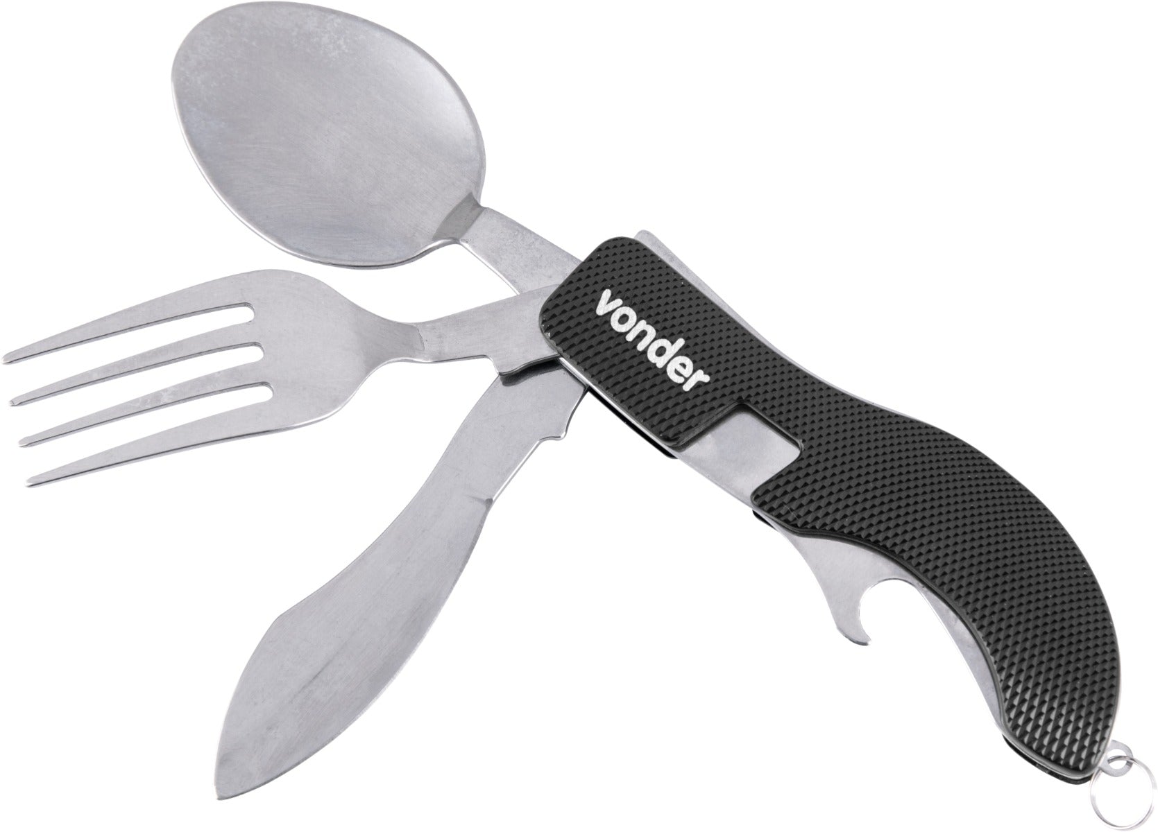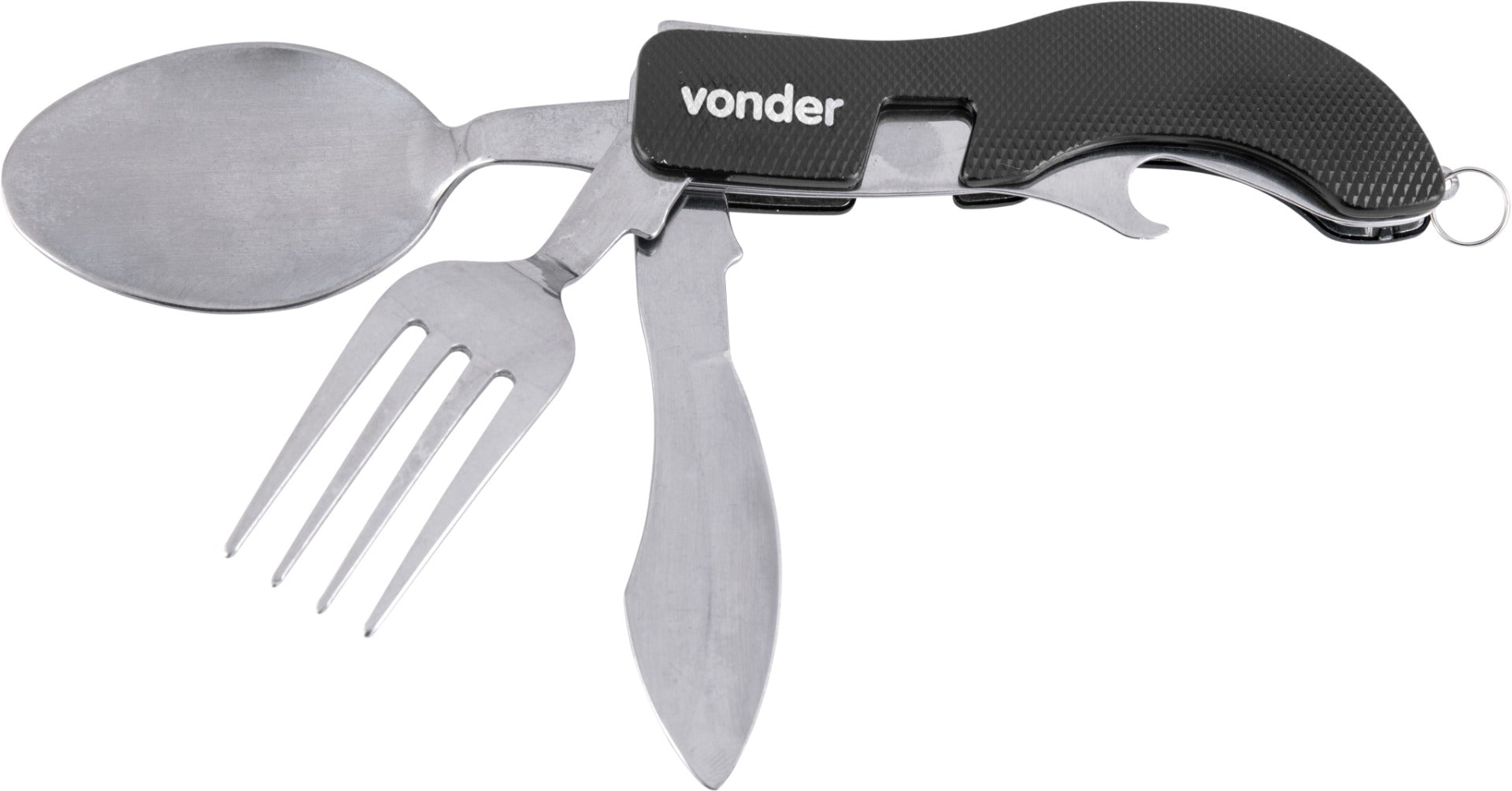 Indicado para uso como talher no consumo e preparo de alimentos. Conta com abridor de garrafas.