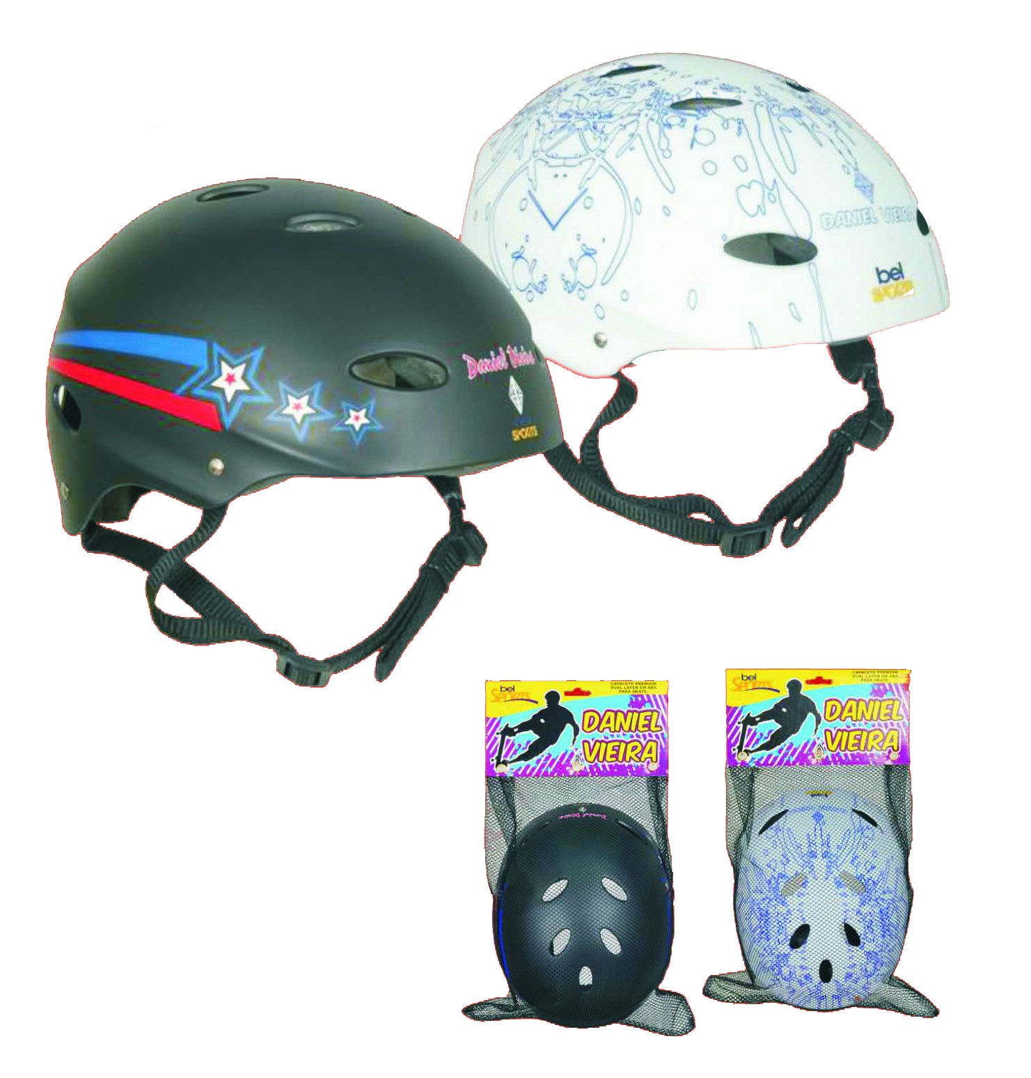 Capacete Daniel Vieira, Casco em ABS, revestimento dual layer em EVA + espuma em PU, resistente a impactos, entrada de ar para maior conforto e ventilação.