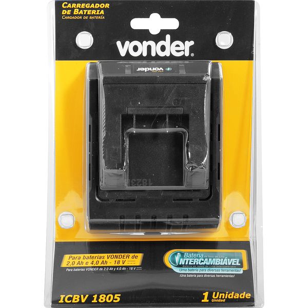 Indicado para carregar as baterias modelos IBV 1802 e IBV 1804, da linha intercambiável VONDER. Tempo de carregamento (aproximado): bateria de 2,0 Ah - 1 hora / bateria de 4,0 Ah - 2 horas. Carregador com carregamento convencional.