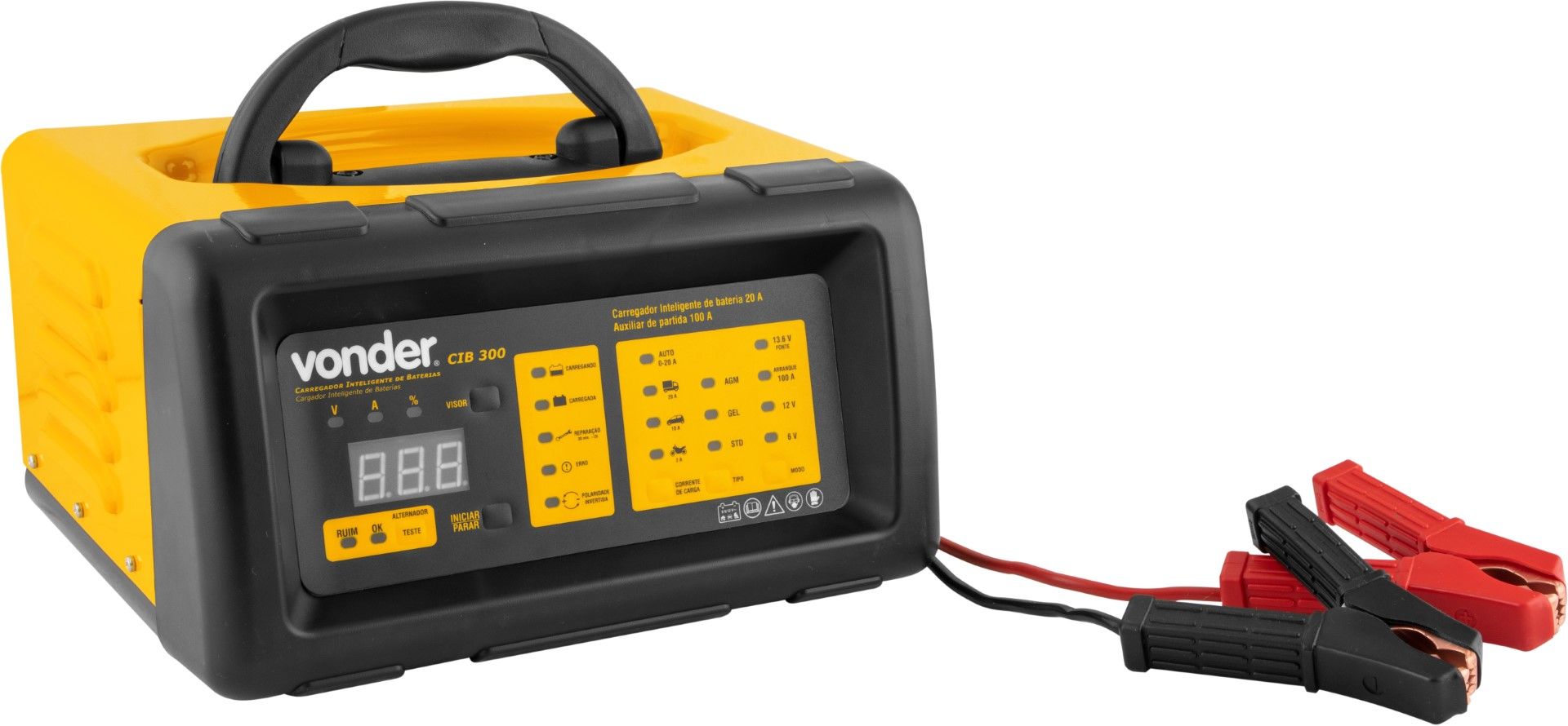 Indicado para carregar ou manter a carga de baterias de motocicletas, automóveis, utilitários, barcos, caminhões, tratores, entre outros veículos ou equipamentos com baterias do tipo chumbo ácidas convencional e VRLA (AGM e Gel), com tensão de 12 V e 6 V na faixa de 6 Ah a 300 Ah. Possui função auxiliar de partida (100 A), modo voltímetro para teste, sistema de carregamento do veículo (alternador) e função fonte automotiva 13,6 V 80 Watts de potência.