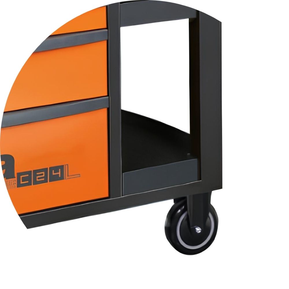 Conteúdo da embalagem: 1 Carrinho de Ferramentas 1100KG Laranja e Cinza 7 Gavetas Protegidas e Prateleira RSC24L/7-O Beta