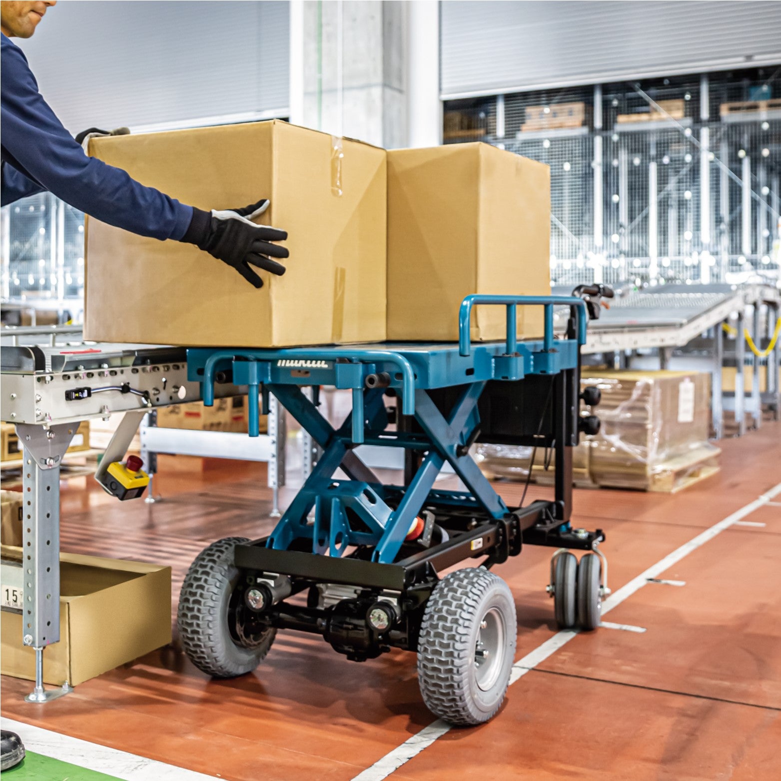 Sua plataforma elevatória ergonômica permite elevar cargas até 1.020 mm acima do solo, tornando o descarregamento mais prático e seguro, especialmente em ambientes nivelados. A estrutura robusta e o sistema de quatro rodas motrizes com tração dianteira garantem mobilidade eficiente até mesmo em terrenos irregulares.