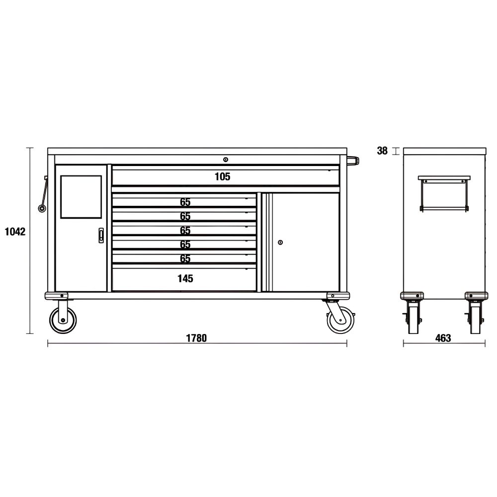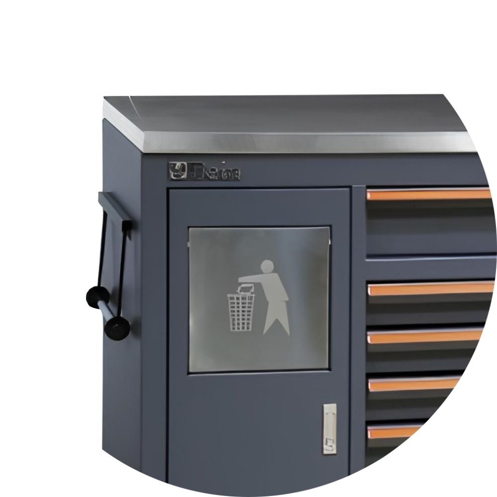 Conteúdo da embalagem: 1 Carrinho de Ferramentas 7 Gavetas Protegidas por Tapete Interno Lixeira Embutida C45PRO MWS/X Beta