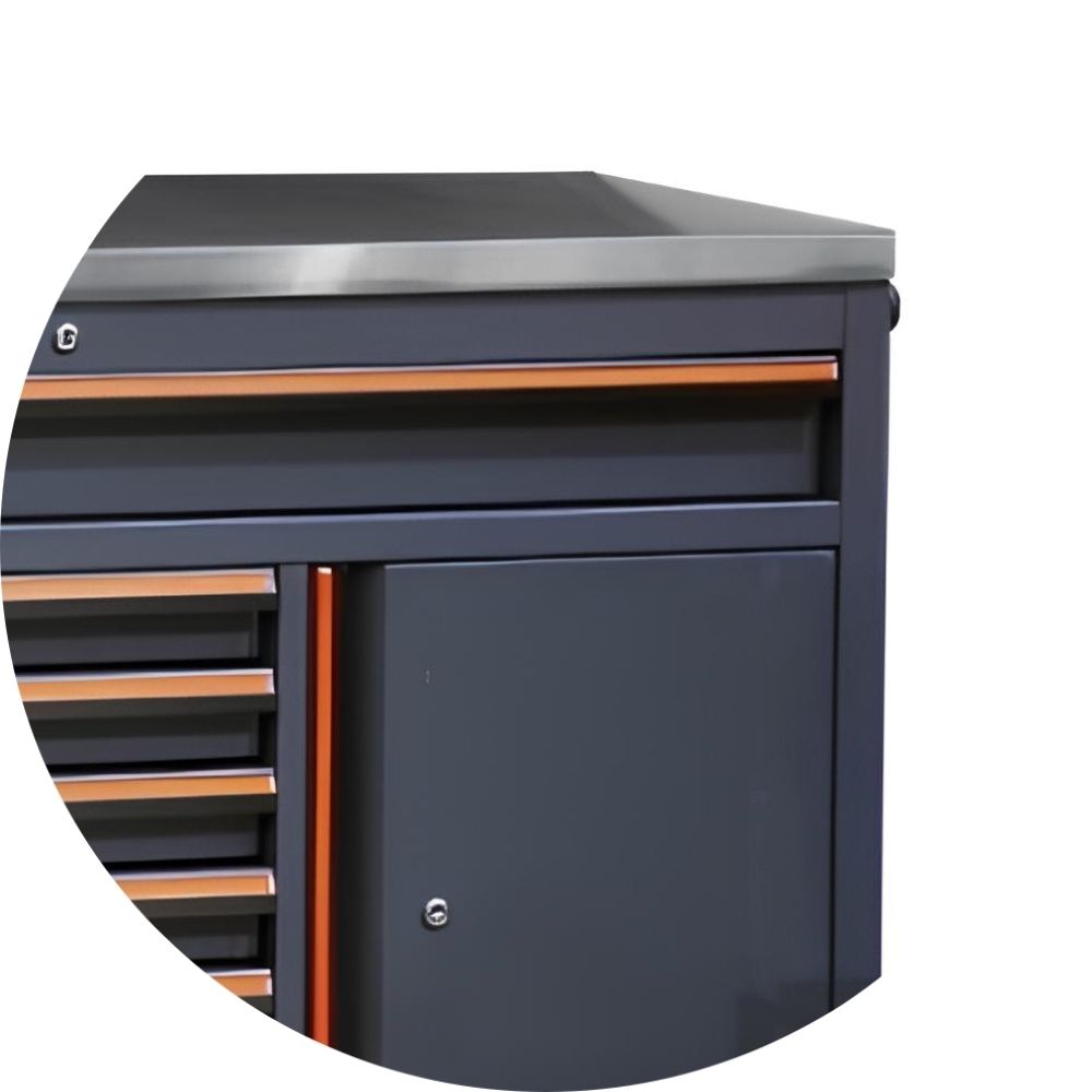 Fechadura centralizada frontal para segurança das ferramentas armazenadas.