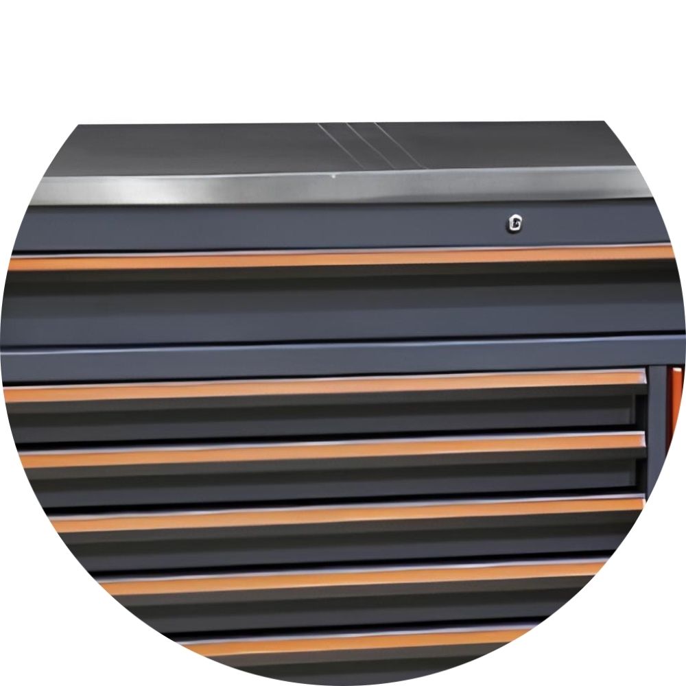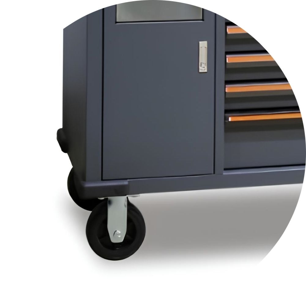 Todas as bases das gavetas são protegidas por tapetes de espuma de borracha, que protegem as ferramentas e reduzem o ruído.