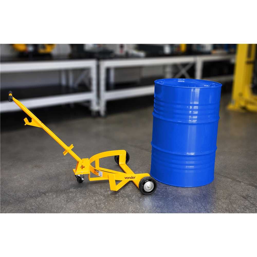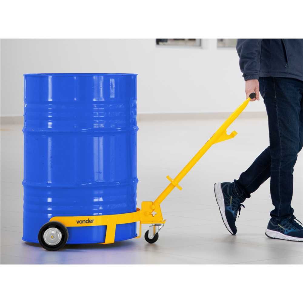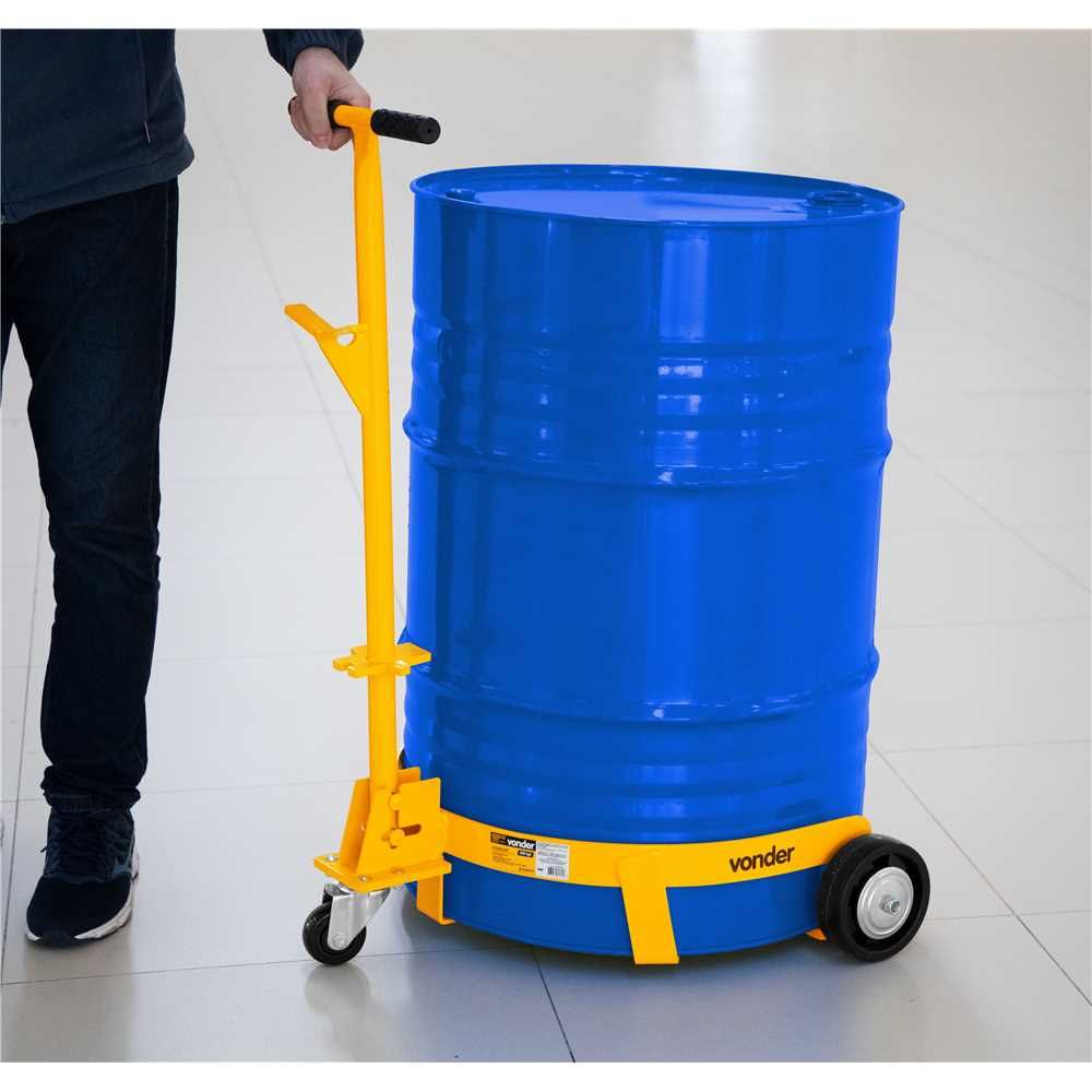 Indicado para movimentação de tambores de aço, plástico ou fibra, com 124 litros ou 200 litros de capacidade.