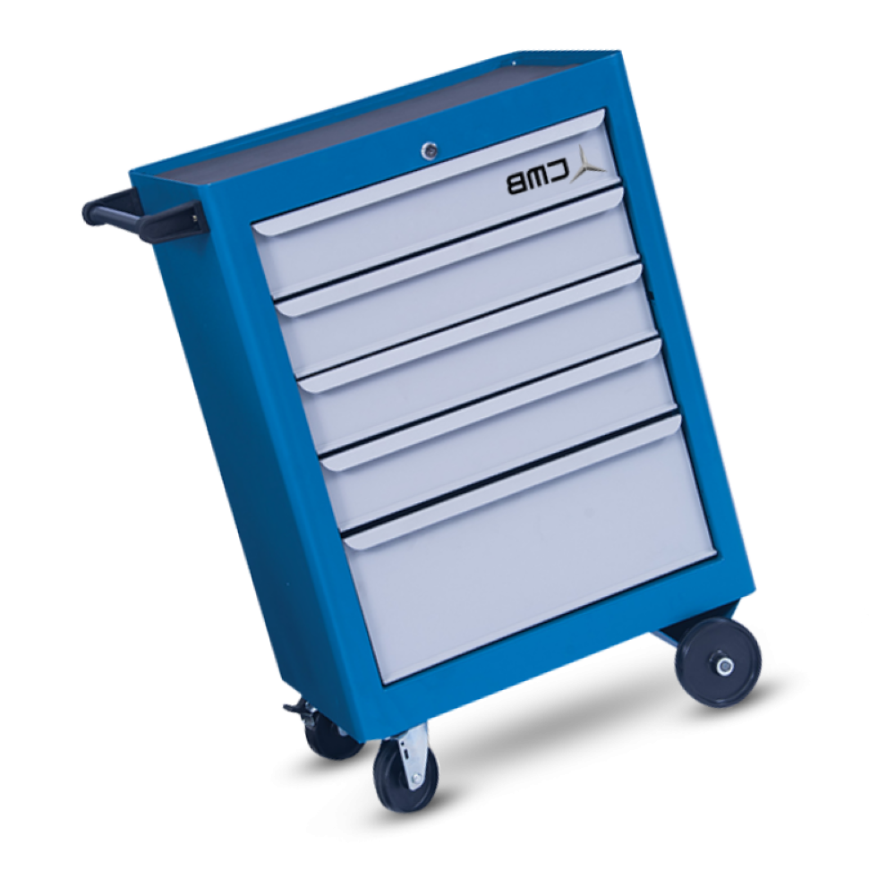 Carrinho para Ferramenta com 1 Bandeja e 5 Gavetas é fabricado em chapas de aço carbono resistentes, recebe tratamento de superfície anticorrosivo e finalmente recebe um acabamento de tinta eletrostática a pó.