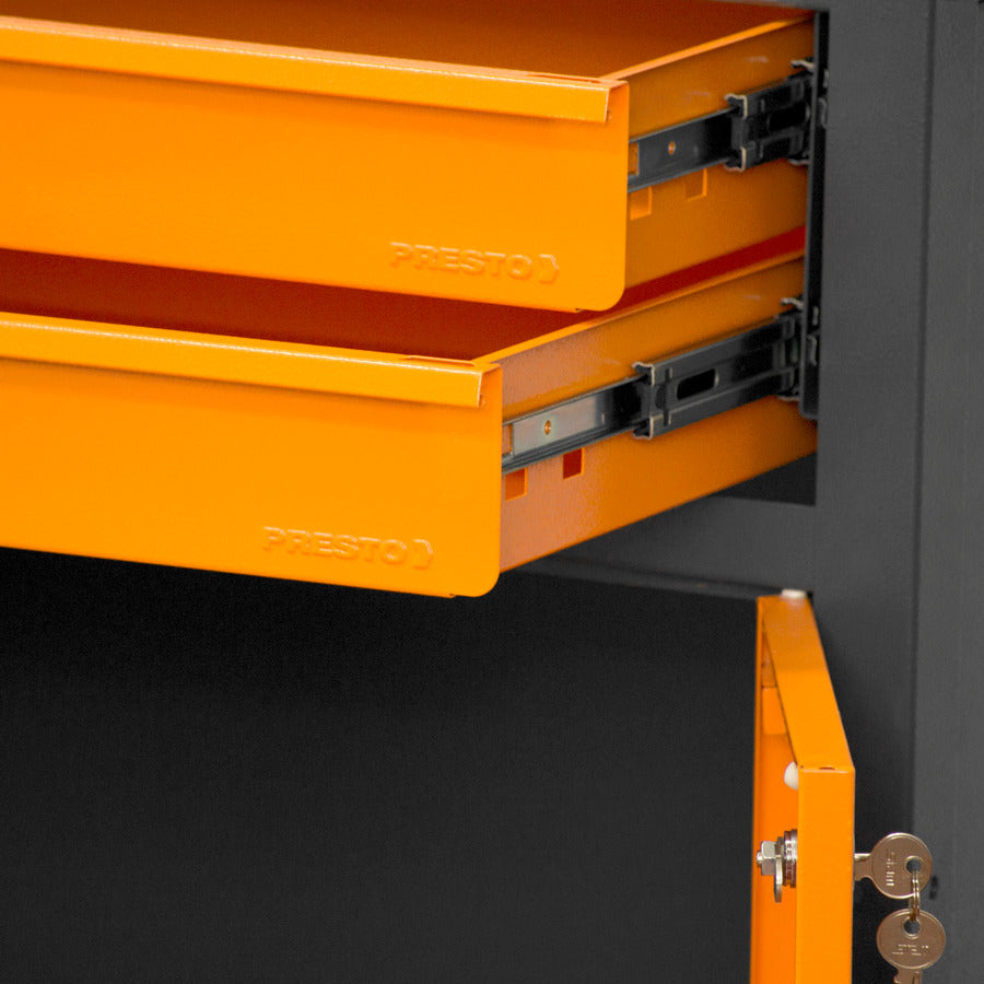 O Carro para Ferramentas Fechado Presto é a solução ideal para quem busca organização e praticidade no ambiente de trabalho. Fabricado pela renomada marca Presto, este carro não só ajuda a organizar e transportar suas ferramentas, mas também serve como uma bancada de trabalho robusta e confiável. Com uma estrutura de aço resistente, ele garante durabilidade e segurança para suas ferramentas mais valiosas. Além disso, o tratamento químico antiferruginoso e a pintura eletrostática proporcionam maior resistência e durabilidade, assegurando que o carro mantenha sua aparência e funcionalidade por muito tempo. Este carro possui 4 rodízios de 3 polegadas, sendo dois fixos e dois móveis, facilitando a movimentação em qualquer ambiente. As gavetas com corrediças telescópicas de esferas oferecem um deslizamento suave e seguro, enquanto o pitão para cadeado resistente garante que suas ferramentas estejam sempre protegidas. Com um design prático, ele é perfeito para exposição em showrooms e otimiza o espaço, aumentando a eficiência no ambiente de trabalho.