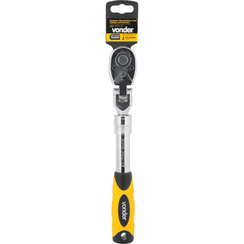 Produzida em aço cromo vanádio, proporcionando maior resistência e durabilidade. Possui punho emborrachado, cabo telescópico/extensível e cabeça flexível para alcançar lugares de difícil acesso.