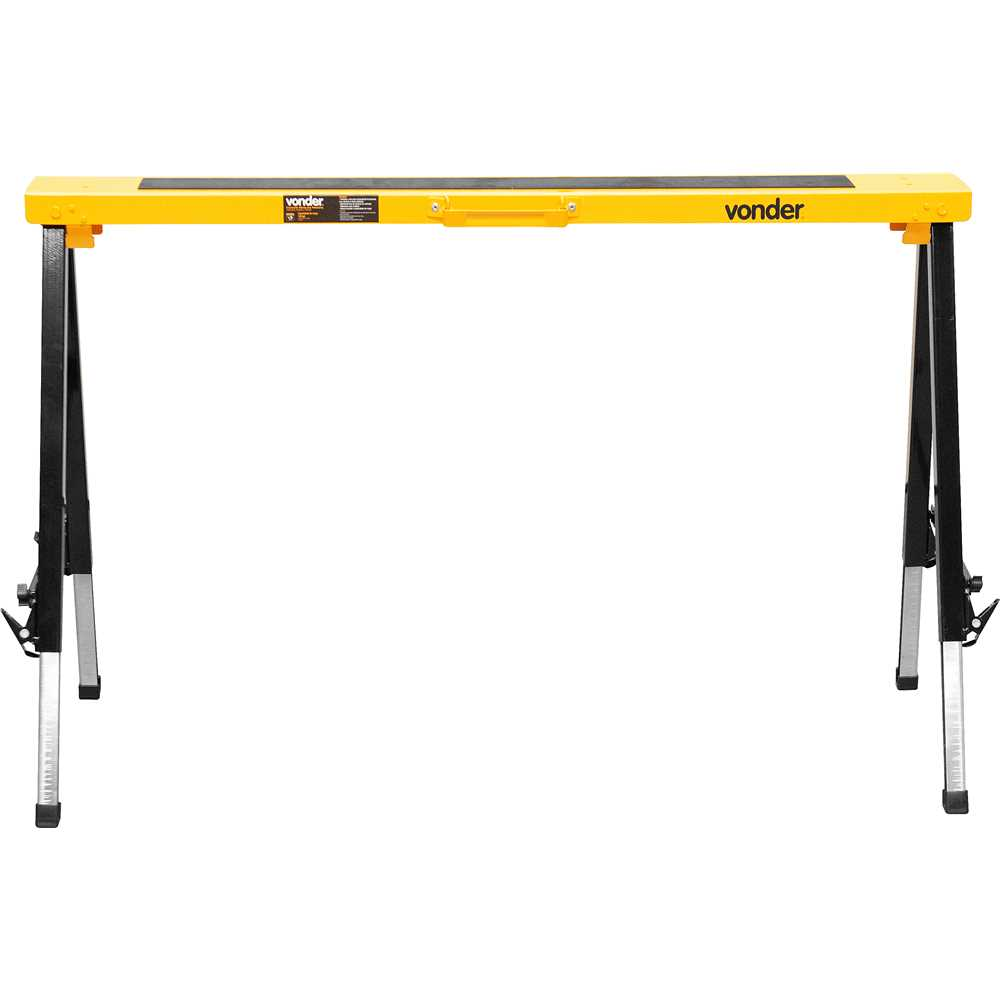 As pernas dobráveis e a alça de transporte tornam o cavalete fácil de armazenar e levar para onde for necessário, otimizando o espaço e aumentando a mobilidade do profissional. O acabamento nas cores preto e amarelo reforça o visual moderno e a identidade da linha profissional Vonder, reconhecida pela alta qualidade e longa vida útil de seus produtos. Seja para montar bancadas temporárias, apoiar cortes de madeira ou estruturar peças em montagem, o Cavalete Metálico Portátil Vonder é sinônimo de eficiência, praticidade e segurança no dia a dia.