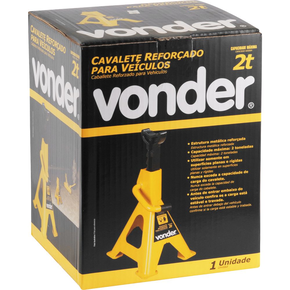 O cavalete para veículos da Vonder é a escolha ideal para quem busca segurança e praticidade na manutenção automotiva. Com capacidade para suportar até 2 toneladas, este cavalete é perfeito para diversos tipos de veículos, garantindo estabilidade e segurança durante o uso. Sua estrutura metálica reforçada e a cor amarela vibrante não apenas proporcionam durabilidade, mas também facilitam a visualização no ambiente de trabalho. Com 10 posições de ajuste, você pode facilmente adaptar a altura conforme a necessidade, variando de 275 mm a 425 mm, graças ao pino trava que assegura o ajuste desejado. A Vonder é uma marca reconhecida pela qualidade e inovação em ferramentas e equipamentos, oferecendo produtos que atendem às necessidades dos profissionais mais exigentes. Este cavalete é um exemplo do compromisso da marca com a segurança e a eficiência.