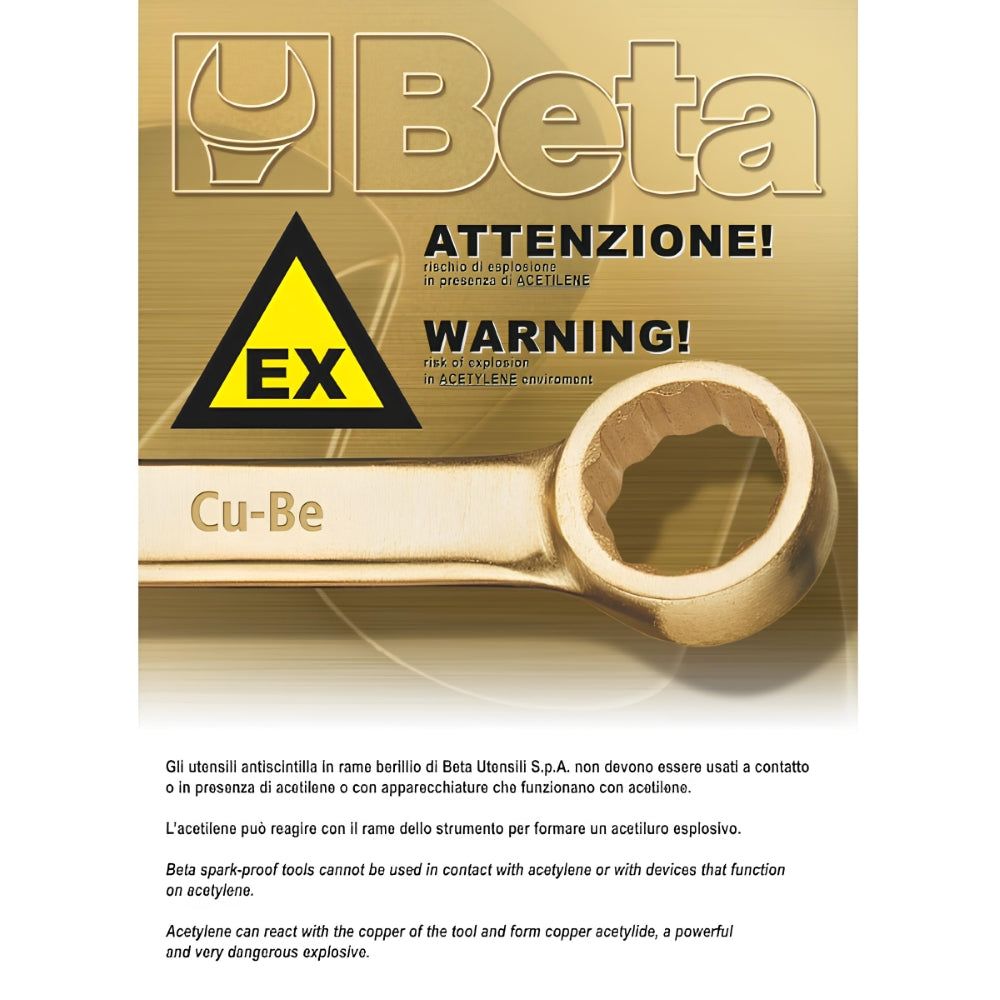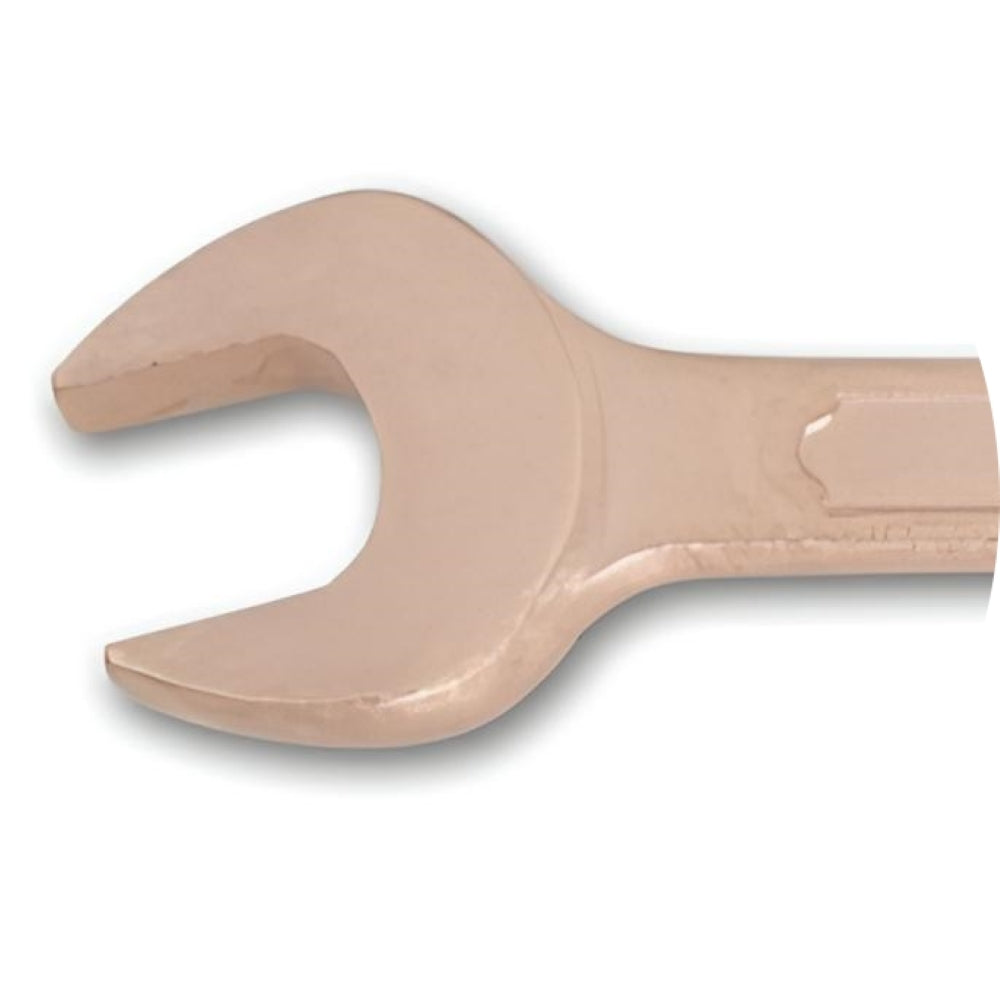 A chave combinada antifaiscante é uma ferramenta versátil, com uma extremidade tipo fixa e outra tipo estrela, ideal para aperto e desaperto de porcas e parafusos. Sua construção em Cobre-Berílio a torna especialmente adequada para uso em ambientes industriais e automotivos, bem como em manutenções e reparos domésticos. Esta ferramenta é projetada para operações seguras em ambientes com risco de explosão devido à presença de líquidos ou gases inflamáveis, e é antimagnética e resistente à corrosão.