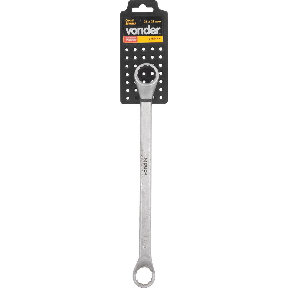 Produzida em aço cromo vanádio, proporcionando melhor qualidade e durabilidade. Possui acabamento cromado fosco, que confere maior resistência à oxidação/corrosão. Com sistema estrela, que permite o encaixe rápido em várias posições e realização de torque superior e mais seguro, conta com mais pontos de fixação, que proporcionam distribuição uniforme da força aplicada na parte central do sextavado, evitando deformação dos cantos das porcas e parafusos.