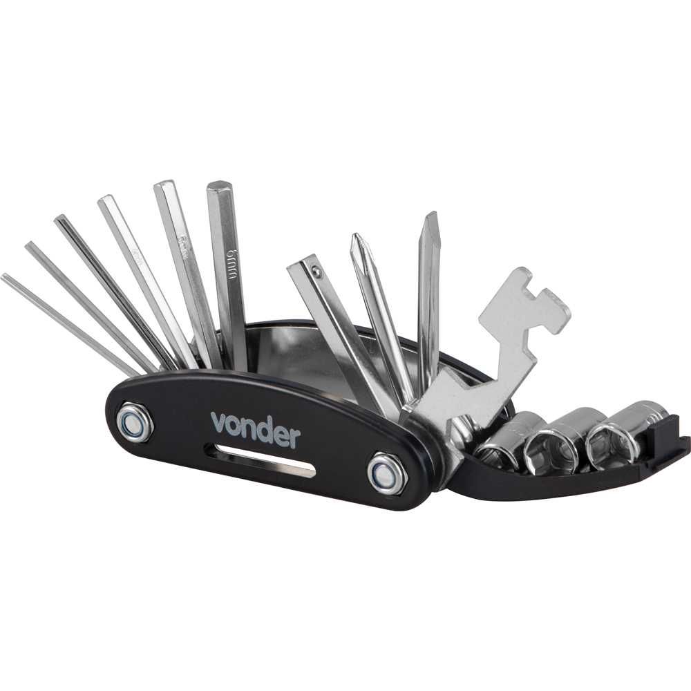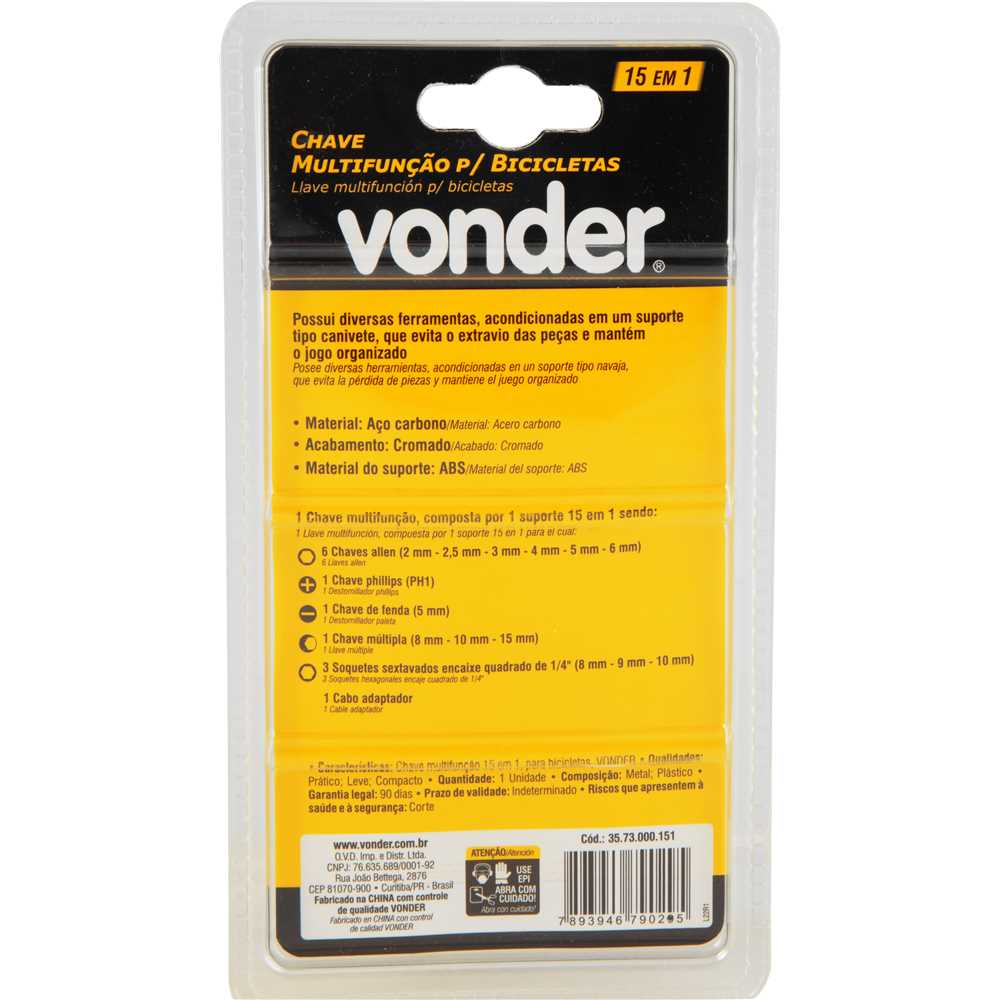 Conteúdo da embalagem: 1 Chave multifunção 15 em 1 para bicicletas Vonder