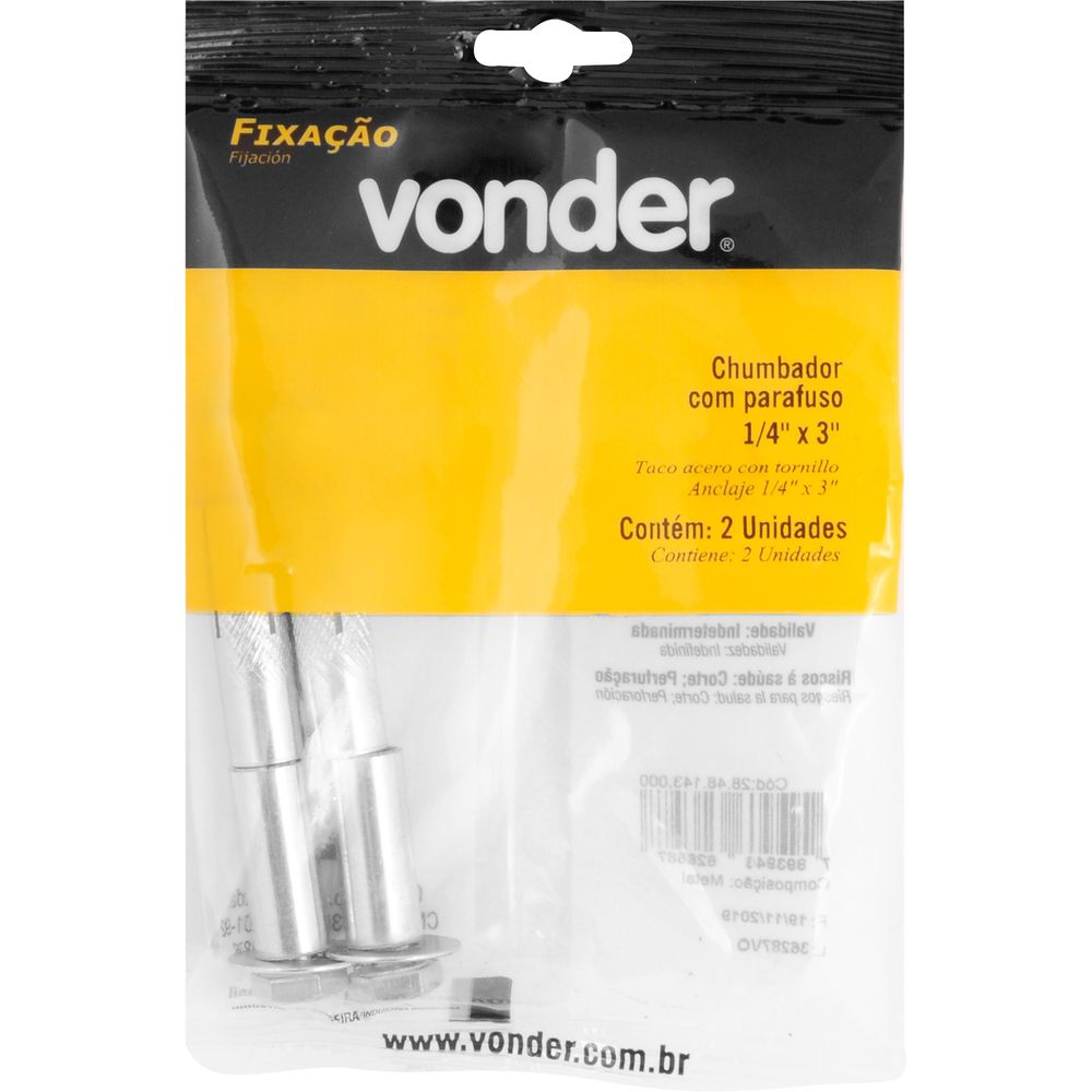 Chumbador com Parafuso 1/4'' X 3'' com 2 peças Vonder