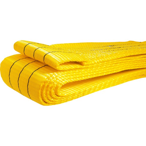 Possui excelente resistência, flexibilidade e facilidade no manuseio, reduzindo o esforço durante a operação, além de oferecer menor risco ou danos na movimentação de cargas. Cinta plana de elevação de carga tipo anel.