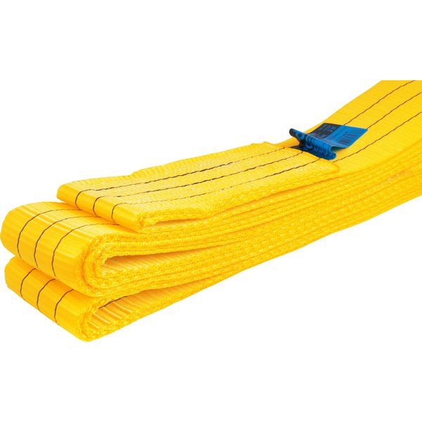 Possui excelente resistência, flexibilidade e facilidade no manuseio, reduzindo o esforço durante a operação, além de oferecer menor risco ou danos na movimentação de cargas. Cinta plana de elevação de carga tipo anel.