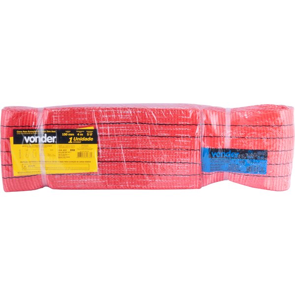 Possui excelente resistência, flexibilidade e facilidade no manuseio, reduzindo o esforço durante a operação, além de oferecer menor risco ou danos na movimentação de cargas. Cinta plana de elevação de carga tipo anel.