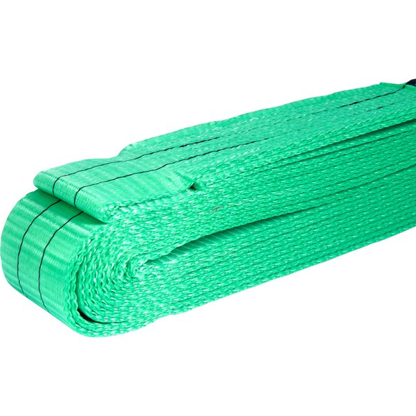 Possui excelente resistência, flexibilidade e facilidade no manuseio, reduzindo o esforço durante a operação, além de oferecer menor risco ou danos na movimentação de cargas. Cinta plana de elevação de carga tipo anel.