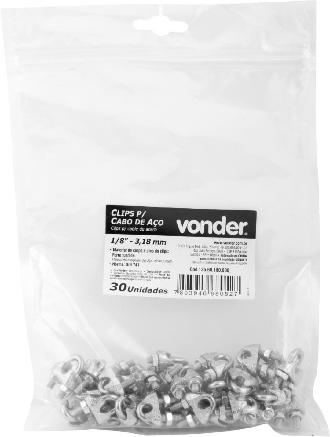 Conteúdo da embalagem: 30 Clips para cabo de aço.
