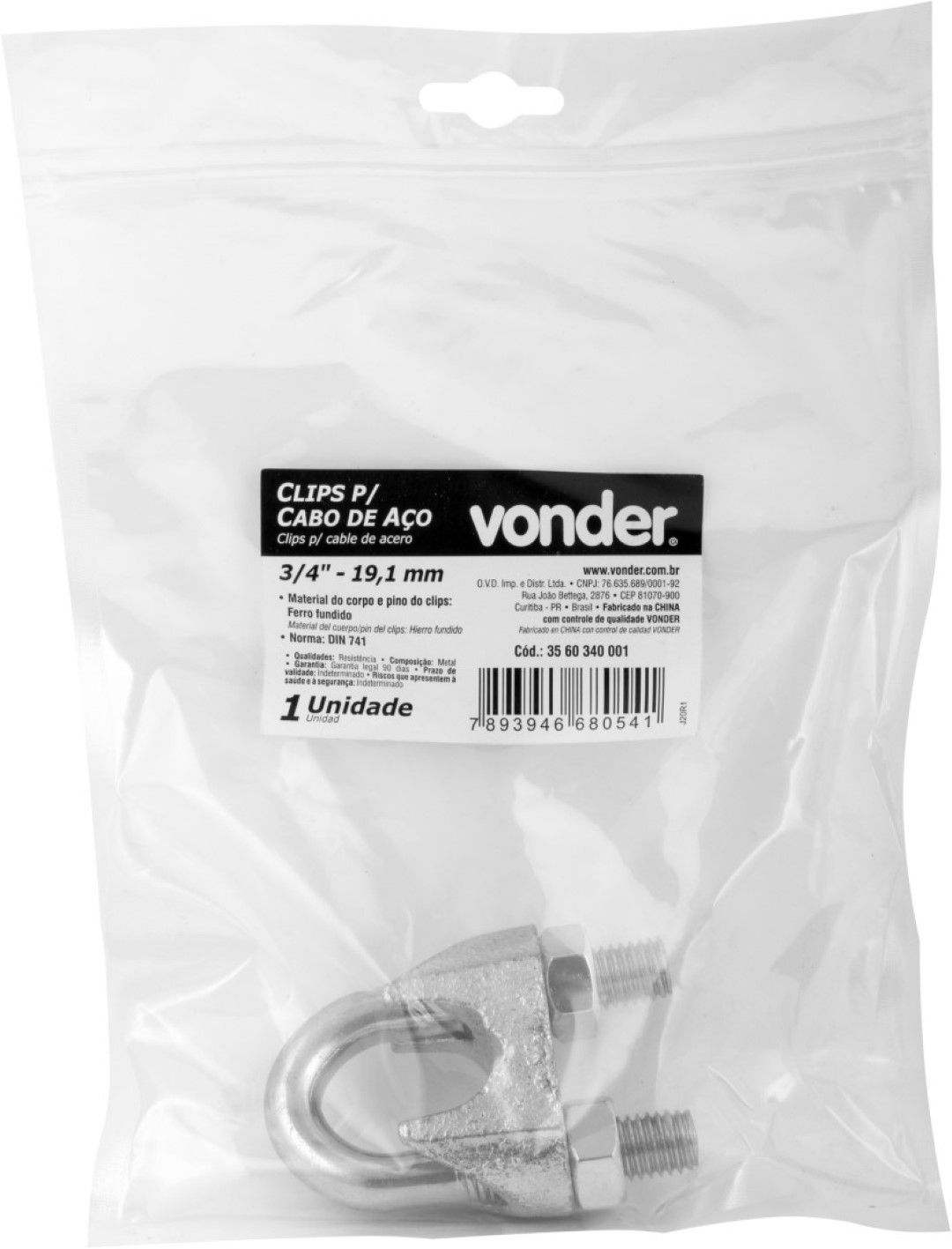 Indicado para prensar/amarrar cabos de aço. A medida dos clips/grampos deve ser compatível com o diâmetro do cabo, recomendado para aplicações leves. Não deve ser usado em aplicações de elevação de cargas.