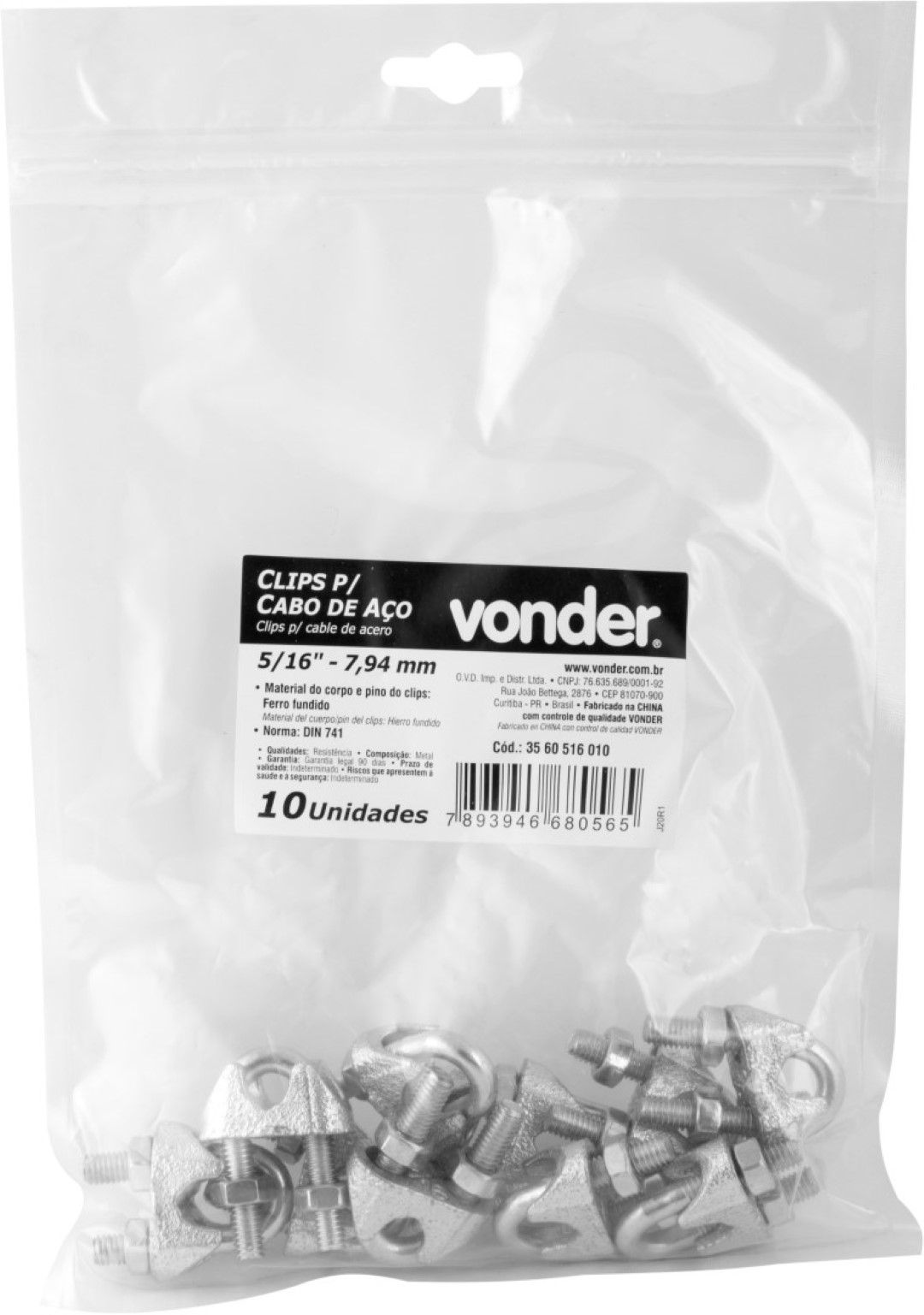 Conteúdo da embalagem: 10 Clips para cabo de aço.