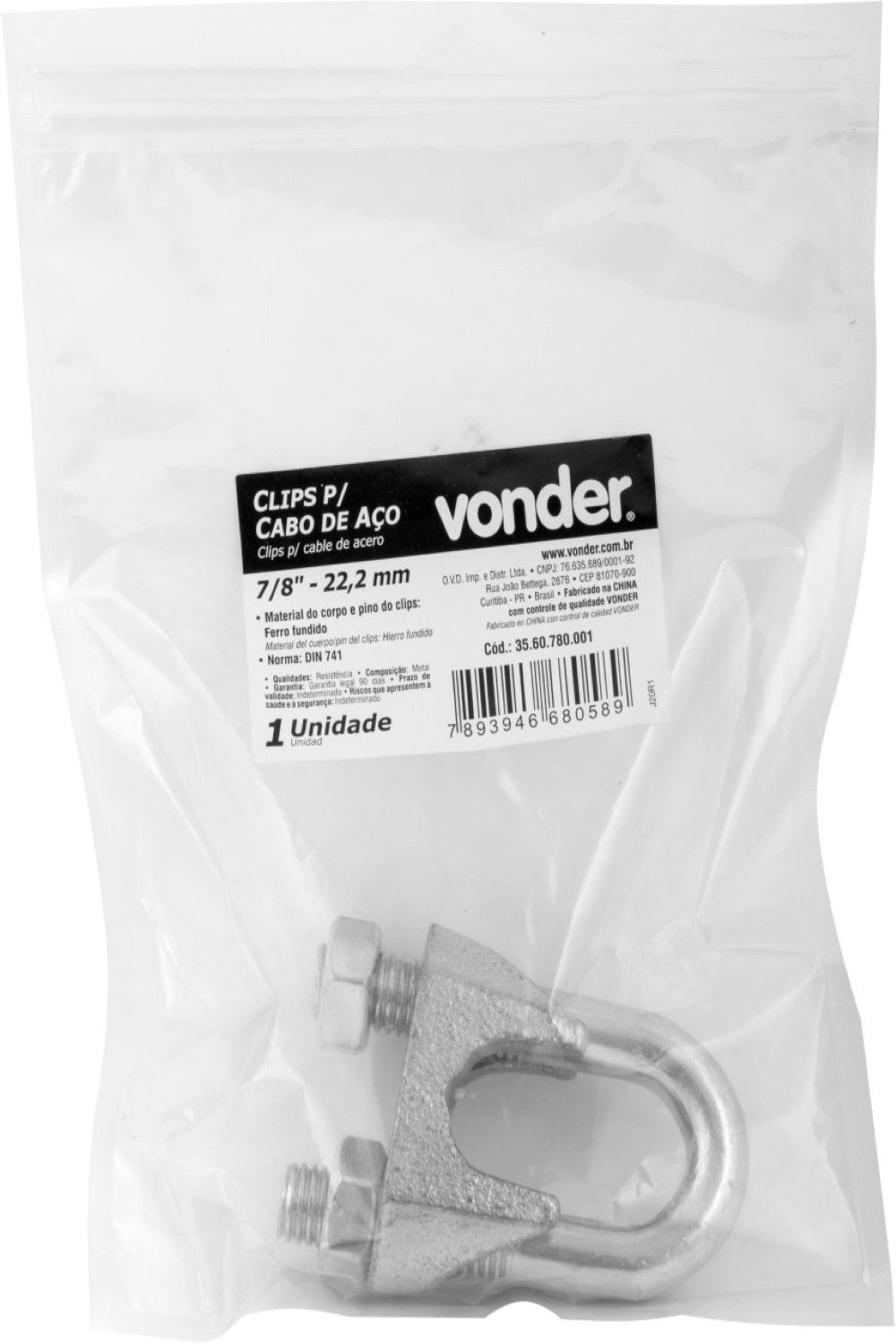 Conteúdo da embalagem: 1 Clips para cabo de aço.