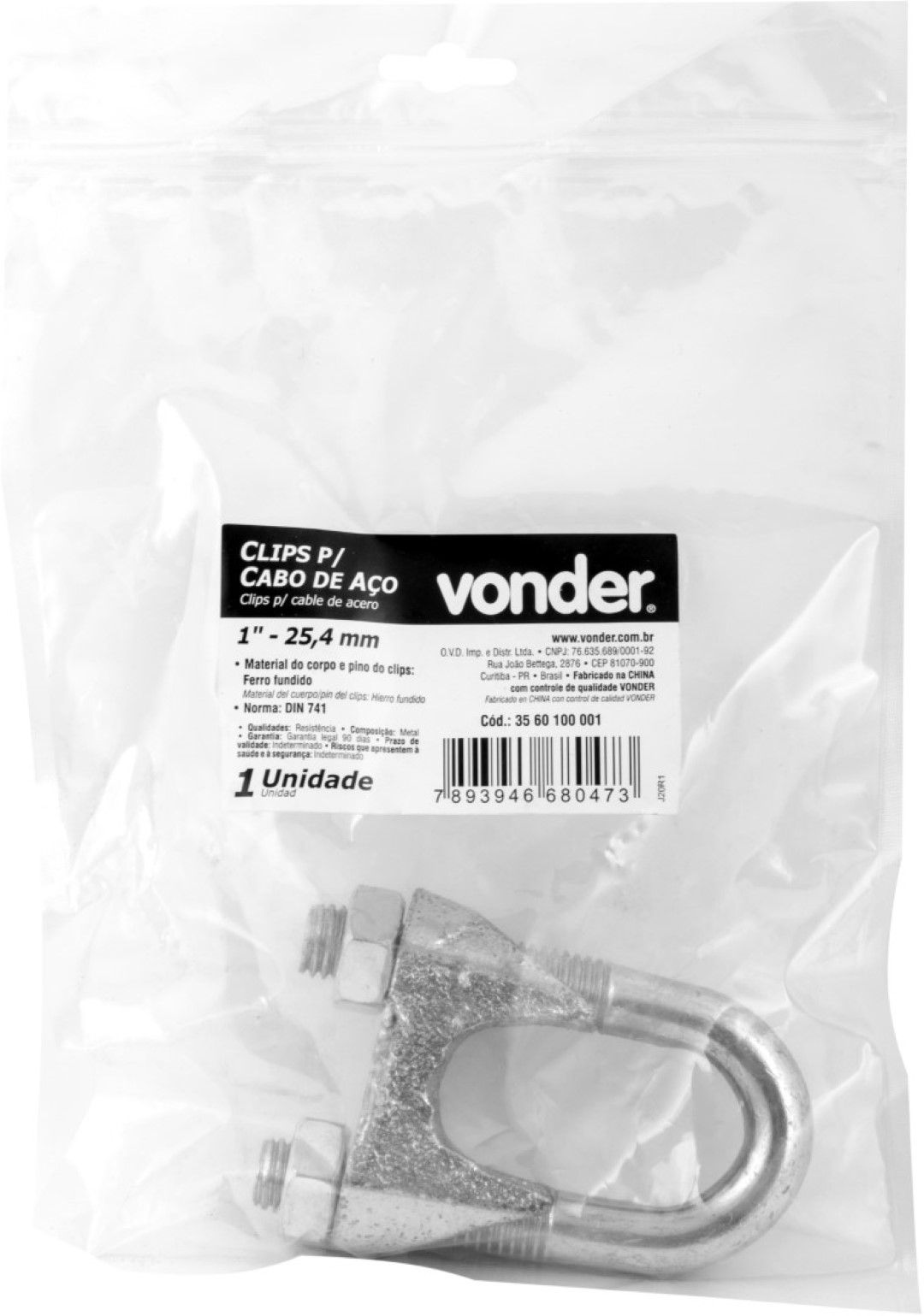 Indicado para prensar/amarrar cabos de aço. A medida dos clips/grampos deve ser compatível com o diâmetro do cabo, recomendado para aplicações leves. Não deve ser usado em aplicações de elevação de cargas.