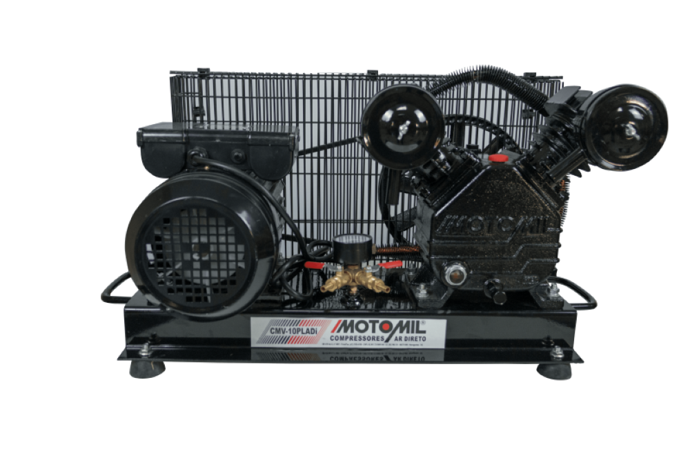 Compressor de ar direto de pistão, monofásico com lubrificação a óleo. Ideal para extração e captação de água em lençóis freáticos através de poços artesianos e outras aplicações.