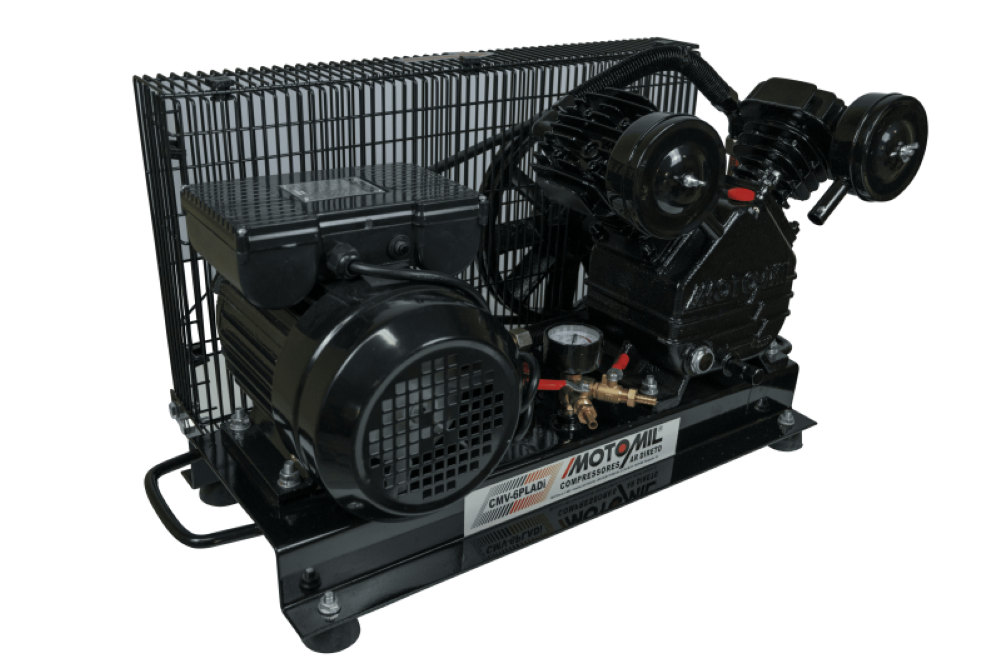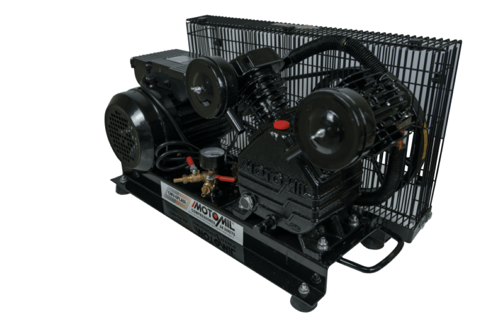 Compressor de ar direto de pistão, monofásico com lubrificação a óleo. Ideal para extração e captação de água em lençóis freáticos através de poços artesianos e outras aplicações.
